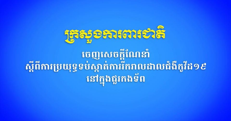 ក្រសួងការពារជាតិ ចេញសេចក្ដីណែនាំ ស្ដីពីការប្រយុទ្ធទប់ស្កាត់ការរីករាលដាលជំងឺកូវីដ១៩ នៅក្នុងជួរកងទ័ព