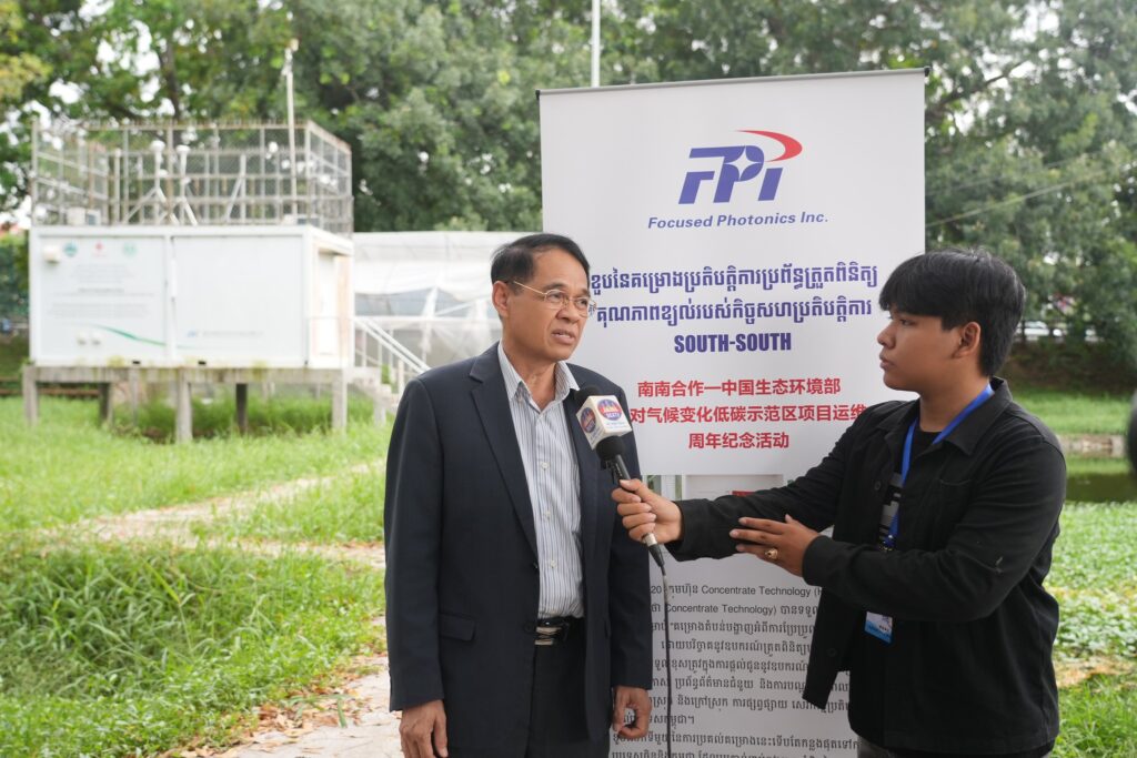 លោក ហ្ស៊ី ហ្សាវទ័រ វិស្វករមកពីប្រទេសចិន ដែលមកពិនិត្យ តាមដានប្រព័ន្ធត្រួតពិនិត្យគុណភាពខ្យល់នៅ កម្ពុជា មានបង្ហាញក្តីរីករាយ ដែលបានរួមចំណែក ក្នុងការធ្វើឲ្យទំនាក់ ទំនងកិច្ចសហការល្អរវាងក្រសួងបរិ ស្ថាន កម្ពុជា និងក្រសួងបរិស្ថាន អេកូឡូស៊ីចិន។ក្រុមហ៊ុន Focused Photonics Inc ហៅកាត់ថា FPI បានទទួលការជោគជ័យ ក្នុងការដេញថ្លៃសម្រាប់ “គម្រោងតំបន់បង្ហាញអំពីការ ប្រែប្រួលអាកាសធាតុរបស់ ក្រសួងបរិស្ថាន ដោយបរិច្ចាគនូវឧបករណ៍ត្រួតពិនិត្យបរិស្ថានដល់ប្រទេស កម្ពុជា”។