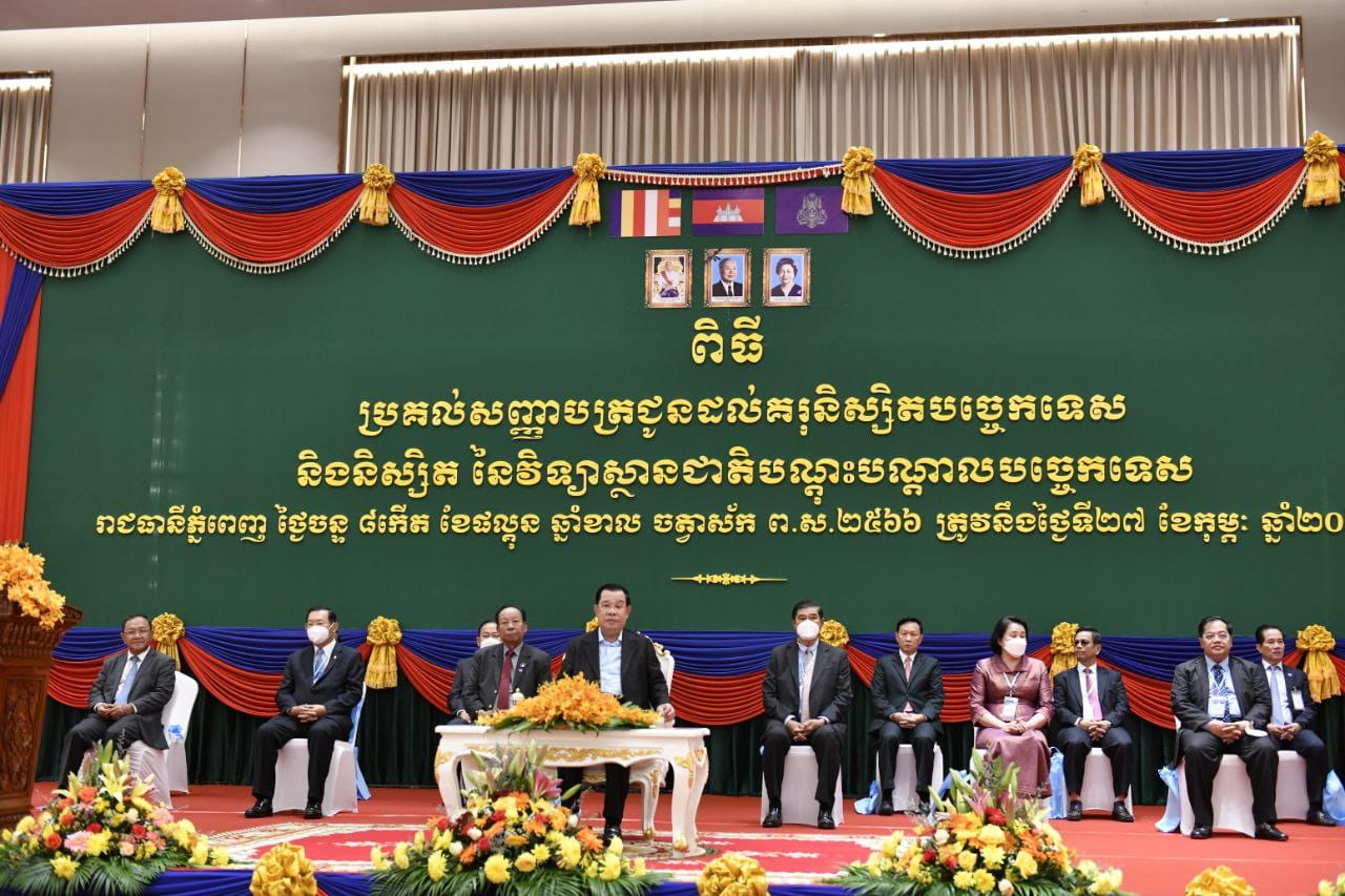 ក្នុងពិធីប្រគល់សញ្ញាបត្រដល់និស្សិតបច្ចេកវិទ្យា និងគរុនិស្សិតបច្ចេកទេសជ័យលាភីនៃវិទ្យាស្ថានជាតិបណ្តុះ បណ្តាលបច្ចេកទេស នៅព្រឹកម៉ិញនេះដែរ សម្តេចតេជោ ហ៊ុន សែន នាយករដ្ឋមន្ត្រីកម្ពុជា បានមានប្រសាសន៍ថា អ្នកវិនិយោគបរទេស លំហូរទីផ្សារ ពីខាងក្រៅរបស់កម្ពុជា ដែលជាលក្ខខណ្ឌអំណោយផលដល់ការវិនិយោគ និងនាំចេញ។