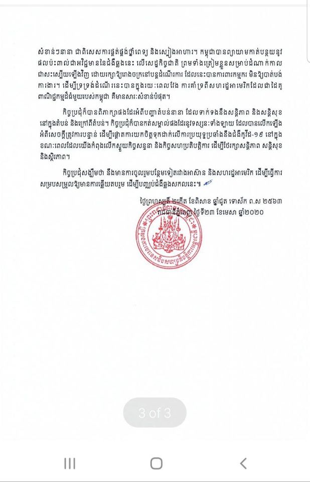តាមរយៈកិច្ចប្រជុំកំពូលរដ្ឋមន្ត្រីការបរទេសអាស៊ាន-អាមេរិក តាមរយៈវីដេអូខនហ្វើរ៉េន នៅថ្ងៃនេះ ប្រមុខការទូតអាស៊ាន និងអាមេរិក បានឯកភាពក្នុងការពង្រឹងកិច្ចសហប្រតិបត្តិការលើវិស័យសុខាភិបាលសាធារណៈរវាងអាស៊ាន និងអាមេរិក ជាពិសេសក្នុងការឆ្លើយតបទៅនឹងកូវីដ១៩ តាមរយៈការគាំទ្រគ្នាទៅវិញទៅមក និងការចូលរួមថ្នាក់ខ្ពស់។ អាមេរិកបានផ្តល់ថវិកា៣៥លានដុល្លារអាមេរិក ក្នុងការគាំទ្រវិស័យសុខាភិបាលសាធារណៈរបស់អាស៊ាន។