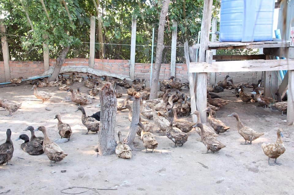 សព្វ ថ្ងៃគាត់មានមេទាពង ២៤០០ក្បាលកំពុងផ្តល់ពងសព្វថ្ងៃនិងត្រៀមដាក់កូនទា ៥០០០ក្បាលទៀតនៅពេលទ្រុងថ្មីសាងសង់រួច។ គាត់ចិញ្ចឹមលើផ្ទៃដីសរុបប្រមាណ ១៦០០មែត្រក្រឡាដែលចំណាយសាងសងលើទ្រុងអស់ ១៣០០ដុល្លា ប្រក់ស្បូវលាយស័ង្កី។