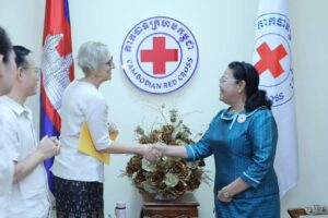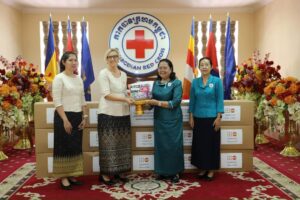 លោកជំទាវ ម៉ែន នារីសោភ័គ អគ្គលេខាធិការរងទី១ កាកបាទ ក្រហមកម្ពុជា នាថ្ងៃទី១១ ខែវិច្ឆិកា ឆ្នាំ២០២៤នេះបាន អញ្ជើញទទួលជួបសវនាការ និងទទួលអំណោយកញ្ចប់ឃីតសម្រាប់ស្ត្រីចំនួន ៦០០ឃីត (ស្មើនឹងថវិកា ១១.៣៧៨ដុល្លារអាម៉េរិក) ពីលោកស្រី សាន់ដ្រា ប៊ឺនក្លាវ (Ms. Sandra Bernklau) តំណាង អង្គការសហប្រជាជាតិសម្រាប់មូលនិធិប្រជាជន (UNFPA) ប្រចាំនៅកម្ពុជា។