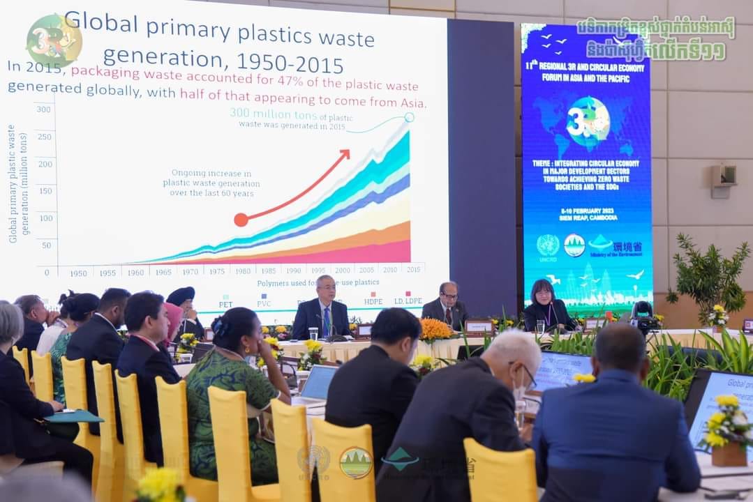 បង្កើតភាពស៊ីសង្វាក់គ្នាក្នុងការសម្រេចបាននូវគោលដៅអភិវឌ្ឍន៍ប្រកបដោយចីរភាព និងកិច្ចព្រមព្រៀងទីក្រុងប៉ារីស៍ស្តីពីការប្រែប្រួលអាកាសធាតុតាមរយៈសេដ្ឋកិច្ចចក្រា គឺជាប្រធានបទសំខាន់ដែលបានលើកឡើងក្នុងកិច្ចពិភាក្សានៃវេទិកាថ្នាក់តំបន់អាស៊ីនិងប៉ាស៊ីហ្វិកលើកទី១១ ស្តីពី 3R និងសេដ្ឋកិច្ចចក្រា ដោយមន្ត្រីជំនាញមកពីក្រសួងបរិស្ថាននៃបណ្តាប្រទេសអាស៊ីនិងប៉ាស៊ីហ្វិក នៅព្រឹកថ្ងៃទី៨ ខែកុម្ភៈ ឆ្នាំ២០២៣ ក្រោយពីពិធីបើកផ្លូវការ ដោយឯកឧត្តម សាយ សំអាល់ រដ្ឋមន្ត្រីក្រសួងបរិស្ថាន។
