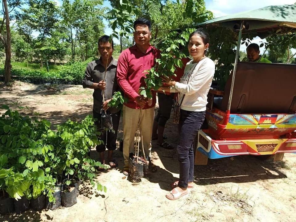 ផ្តល់កូនឈើជូនលោក លឹម ប៊ុនហាន នាយកសាលាបឋមសិក្សាសុខសាន្ត ចំនួន១០០ ដើម ដើម្បីយកទៅដាំក្នុងទីធ្លាសាលារៀន ស្ថិតក្នុងភូមិសុខសាន្ត ឃុំយាង ស្រុកពួក ខេត្តសៀមរាប។