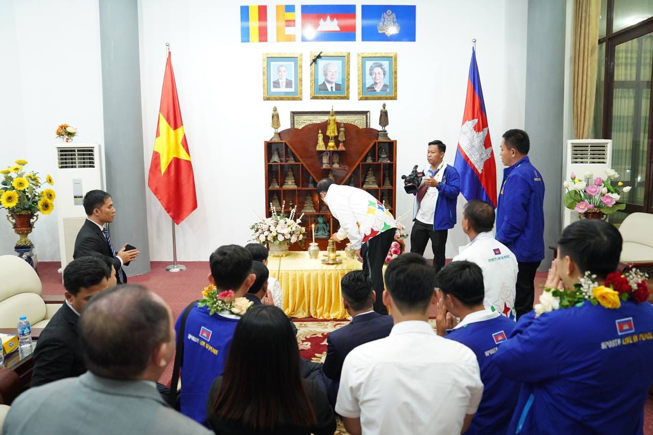 ភ្លើងគប់នេះ ត្រូវបានដង្ហែយកទៅរក្សាទុកនៅស្ថានទូតកម្ពុជា ប្រចាំប្រទេសវៀតណាម ដើម្បីត្រៀមរៀបចំពិធីរត់ភ្លើងគប់ នៅរដ្ឋធានីហាណូយ ជុំវិញបឹង Ho Guom ជាផ្លូវការ នាថ្ងៃទី២៤ ខែមីនា ឆ្នាំ២០២៣ ស្អែកនេះ។