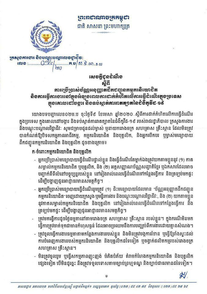 សេចក្ដីជូនដំណឹងមានខ្លឹមសារទាំងស្រុងដូចខាងក្រោម៖