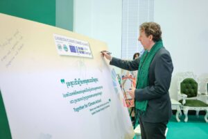ជាមួយគ្នានេះ ឯកឧត្តម អីហ្គរ ទ្រីសមែន (Igor Driesmans) ឯកអគ្គរដ្ឋទូតវិសាមញ្ញ និងពេញសមត្ថភាពនៃសហភាពអឺរ៉ុបបានថ្លែងដែរថា ការបង្ហាញភាពជោគជ័យនៃកម្មវិធីសម្ព័ន្ធភាពប្រែប្រួលអាកាសធាតុនាពេលនេះ គឺជាសក្ខីកម្មនៃគំនិតផ្តួចផ្តើមអស់រយៈពេល ១៥ឆ្នាំ របស់យើងក្នុងភាពជាដៃគូដ៏រឹងមាំរវាងសហភាពអឺរ៉ុប និងព្រះរាជាណាចក្រកម្ពុជា ក្នុងការប្តេជ្ញាចិត្តរួមគ្នាប្រយុទ្ធប្រឆាំងនឹងការប្រែប្រួលអាកាសធាតុ តាមរយៈកិច្ចខិតខំប្រឹងប្រែងឱ្យអស់លទ្ធភាពជាតិ និងអន្តរជាតិ ក្នុងការប្តេជ្ញាចិត្តបង្ការមិនឱ្យមានការកើនកំដៅផែនដីលើសពី២.០អង្សារសេ ឱ្យមកនីត្រឹមតែ១.៥អង្សារសេ ។