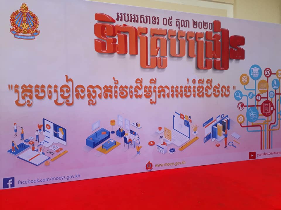 (ភ្នំពេញ)៖ ពិធីអបអរសាទរទិវាគ្រូបង្រៀន ០៥ តុលា ក្រោមប្រធានបទ “គ្រូបង្រៀនឆ្លាតវៃដើម្បីការអប់រំឌីជីថល” ក្រោមអធិបតីភាពឯកឧត្ដមបណ្ឌិតសភាចារ្យ ហង់ជួន ណារ៉ុន រដ្ឋមន្ត្រីក្រសួងអប់រំ យុវជន និងកីឡា នៅវិទ្យាស្ថានជាតិអប់រំ។