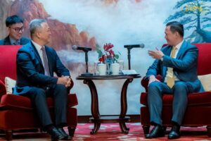 ក្នុងជំនួបនេះ លោកប្រធានក្រុមប្រឹក្សាភិបាលក្រុម ហ៊ុន CMEC បានជម្រាបជូន សម្តេចធិបតី អំពីវឌ្ឍន ភាពរីកចម្រើនរបស់ក្រុមហ៊ុន CMEC ជាបុត្រសម្ព័ន្ធរបស់ក្រុមហ៊ុន SINOMACH ដែលមានជំនាញក្នុងវិស័យទឹកស្អាត, ថាមពល និងហេដ្ឋារចនាសម្ព័ន្ធ ហើយបានធ្វើការវិនិយោគក្នុងគម្រោងជាច្រើន នៅកម្ពុជា។
