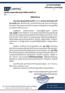 គណៈកម្មការស្តារក្រុមហ៊ុននិងមូលនិធិនៃក្រុមហ៊ុន CIC បានប្រកាសយ៉ាងដាច់អហង្កា និងច្រានចោលទាំងស្រុងនូវព័ត៌មានមិនពិត និងគ្មានមូលដ្ឋានរបស់សារព័ត៌មានបរទេសមួយទាក់ទងនឹងក្រុមហ៊ុន តាមការចុះផ្សាយវីដេអូមួយនៅថ្ងៃទី២៧ ខែសីហា ឆ្នាំ២០២៤ ដោយបានភ្ជាប់លោកជំទាវ ពេជ ចន្ទមុនី ថាមានជាប់ពាក់ព័ន្ទនឹងលោក គុយ វ៉ាត អតីតប្រធានក្រុមហ៊ុន CIC ដែលទង្វើបែបនេះ គ្មានសីលធម៌ គ្មានក្រមសីលធម៌វិជ្ជាជីវៈជាអ្នកវិភាគ និងជាអ្នកសារព័ត៌មាននោះទេ៕