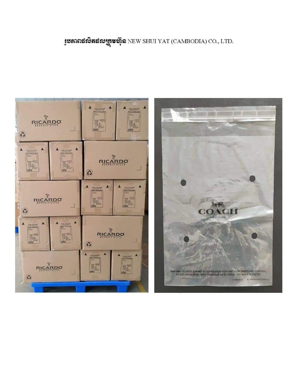 ១៖ NEW SHUI YAT (CAMBODIA) CO., LTD គម្រោងបង្កើតរោងចក្រផលិតកេសកាតុង ថង់ប្លាស្ទិក និងអេប៉ុង ស្ថិតនៅភូមិបូរីកម្មករ សង្កាត់ច្បារមន ខេត្តកំពង់ស្ពឺ មានទុនវិនិយោគប្រមាណ ៨.៥លានដុល្លារអាមេរិក និងអាចបង្កើតការងារបានចំនួន៣៥៨កន្លែង។