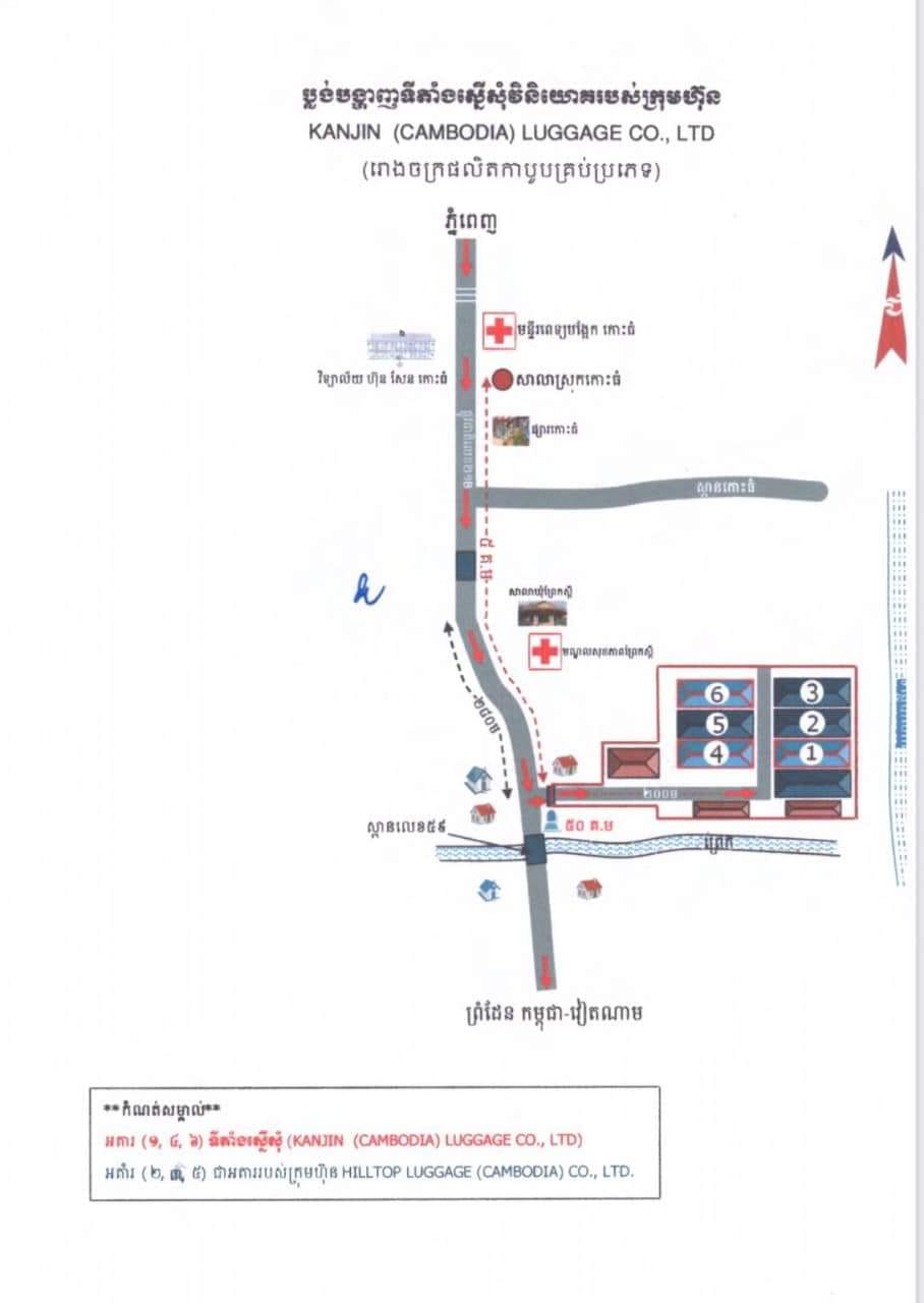 ២៖ KANJIN (CAMBODIA) LUGGAGE CO., LTD គម្រោងបង្កើតរោងចក្រផលិតកាបូបគ្រប់ប្រភេទ ដែលមានទីតាំងវិនិយោគស្ថិតនៅផ្លូវជាតិលេខ២១B ភូមិអន្លង់សាន្ត ឃុំព្រែកស្តី ស្រុកកោះធំ ខេត្តកណ្តាល មានទុនវិនិយោគប្រមាណ៥.៥លានដុល្លារអាម៉េរិក និងអាចបង្កើតការងារបានចំនួន១,៧៧០កន្លែង៕