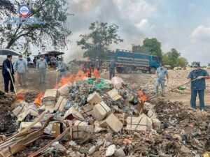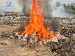 បន្ទាប់ពីបានធ្វើការពិនិត្យរួចឃើញថាមិនមានលក្ខណៈសមស្រប មន្រ្តីជំនាញសាខា ក.ប.ប. ខេត្តបាត់ដំបង និងមន្រ្តីជំនាញគយចល័តតំបន់៤ បានធ្វើការដុតកម្ទេចចោលនូវឆ្អឹងជំនីជ្រូក និងជើងជ្រូកបង្កក ចំនួន ២តោន ៣៥២ គីឡូក្រាម តាមនីតិវិធី។
