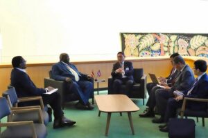 ក្នុងឱកាសអញ្ជើញចូលរួមមហាសន្និបាត អង្គការសហប្រជាជាតិ លើកទី៧៩ ឯកឧត្តម សុខ ចិន្តាសោភា ឧបនាយករដ្ឋមន្ត្រី រដ្ឋមន្ត្រីការបរទេស និងសហប្រតិបត្តិការអន្តរជាតិ បានជួប ពិភាក្សាការងារទ្វេភាគីជាមួយឯកឧត្តម Okello Oryem Henry រដ្ឋមន្ត្រីការបរទេសនៃសាធារណរដ្ឋអ៊ូហ្កង់ដា នៅទីស្នាក់ ការអង្គការសហប្រជាជាតិ ទីក្រុងញូវយ៉ក។