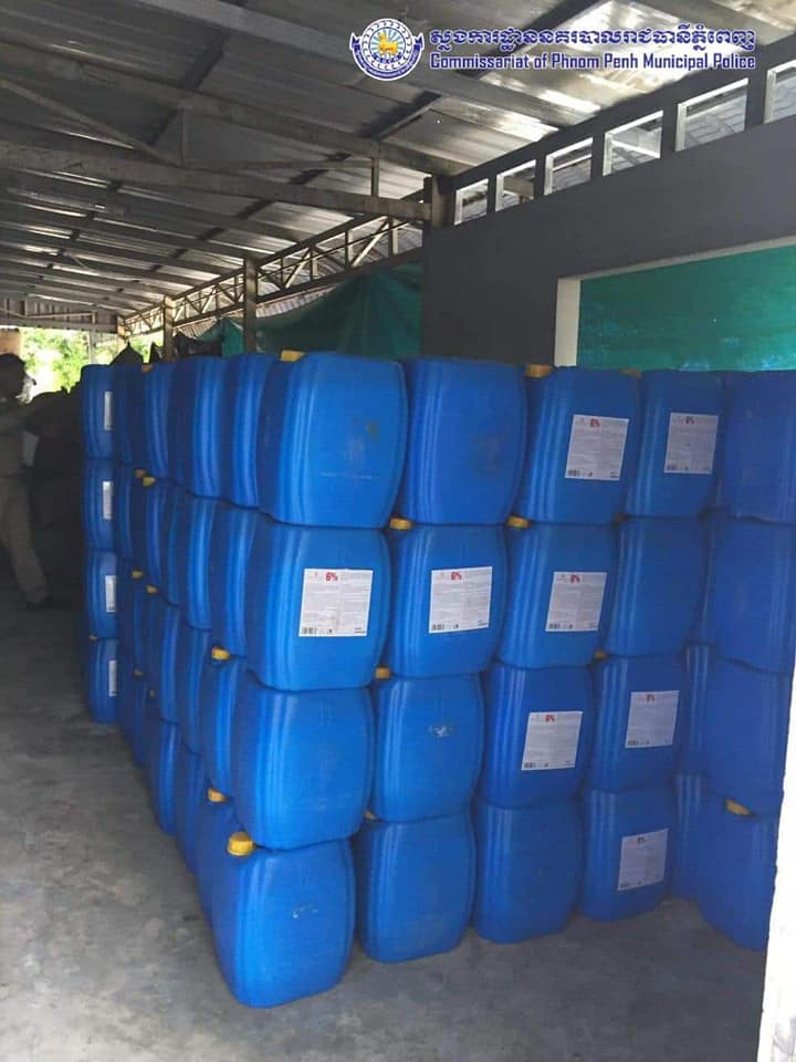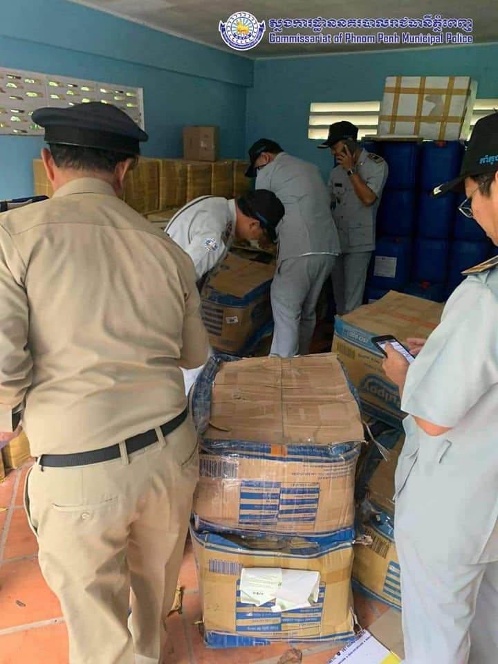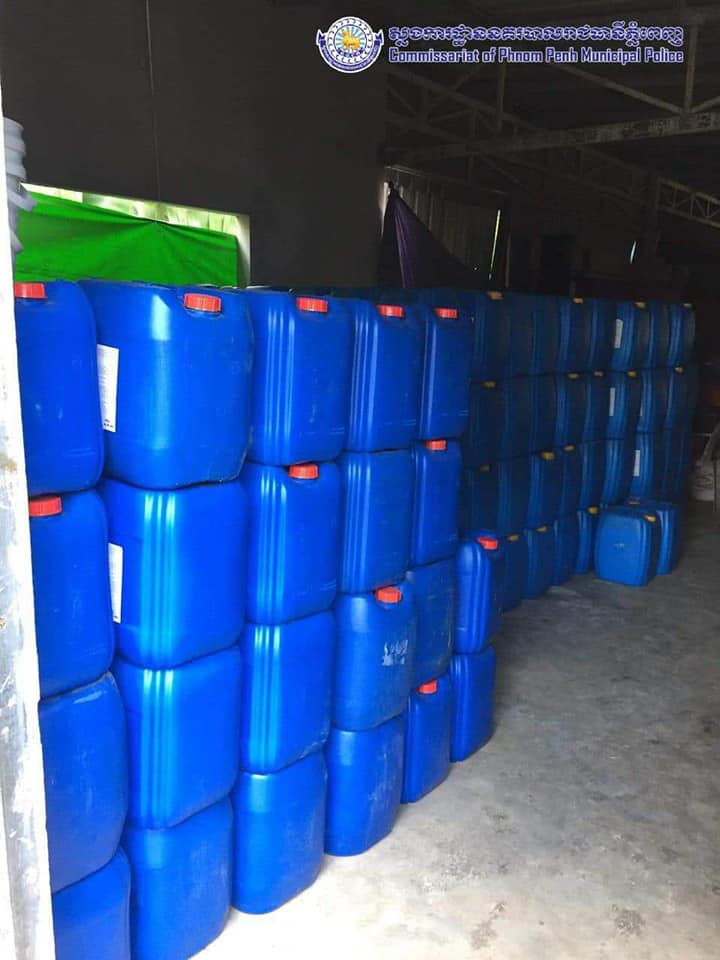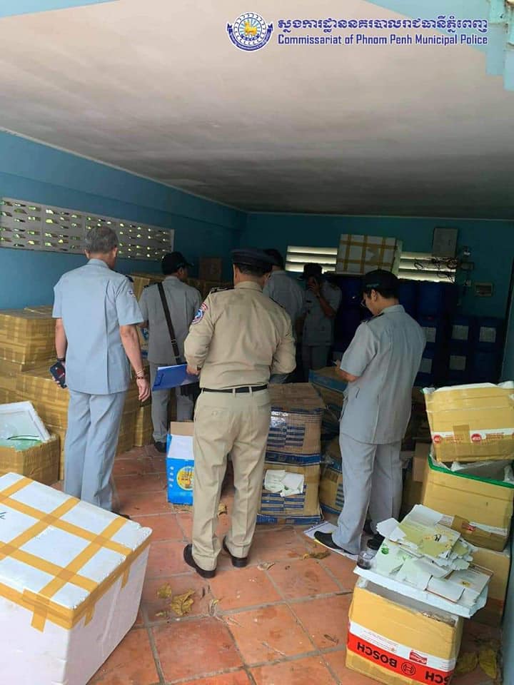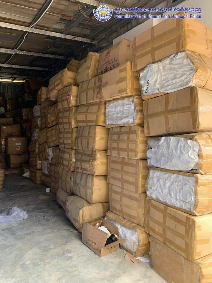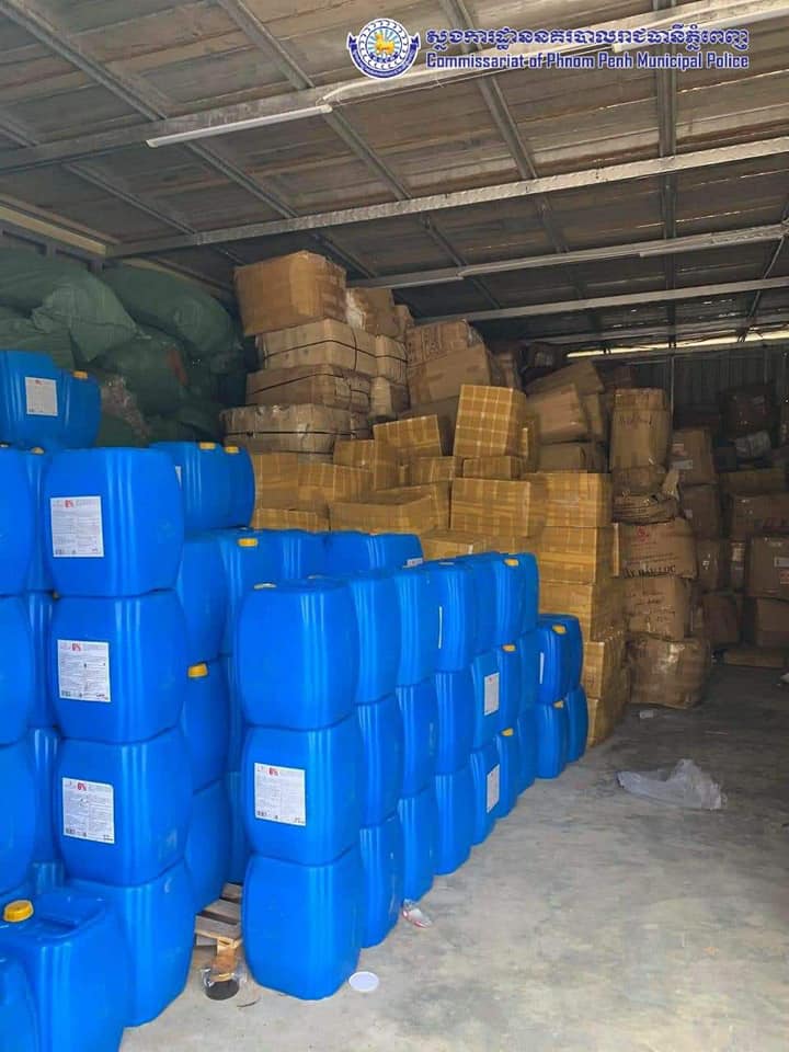 ដោយមានការឯកភាពពីឯកឧត្តម ច្រឹង ខ្មៅ ព្រះរាជអជ្ញាអមសាលាដំបូងរាជធានីភ្នំពេញ សមត្ថកិច្ចផែនការងារប្រឆាំងបទល្មេីសសេដ្ឋកិច្ចនៃស្នងការដ្ឋាននគរបាលរាជធានីភ្នំពេញ បានចុះបង្ក្រាបជាក់ស្តែងទីតាំងស្តុក និងផលិតគ្រឿងសំអាងខុសច្បាប់មួយកន្លែងនៅសង្កាត់ព្រែកឯង ខណ្ឌច្បារអំពៅ ដោយរកឃេីញផលិតផលគ្រឿងសំអាងចំនួន ៥៥តោន ជាបណ្តោះអាសន្ន ពេលនេះសមត្ថកិច្ចកំពុងបន្តនីតិវិធីស្រាវ ជ្រាវបន្ត និងបានឃាត់ខ្លនជនសង្ស័យចំនួន៤នាក់ បញ្ជូនទៅតុលាការដេីម្បីអនុវត្តបន្តតាមនីតិវិធីច្បាប់ ការអុវត្តនេះក៏មានការចូលរួមសហការពីមន្ត្រីនៃអគ្គនាយកដ្ឋានកាំកុង ត្រូល និងមន្ត្រីនៃមន្ទីរសុខាភិបាលផងដែរ ។