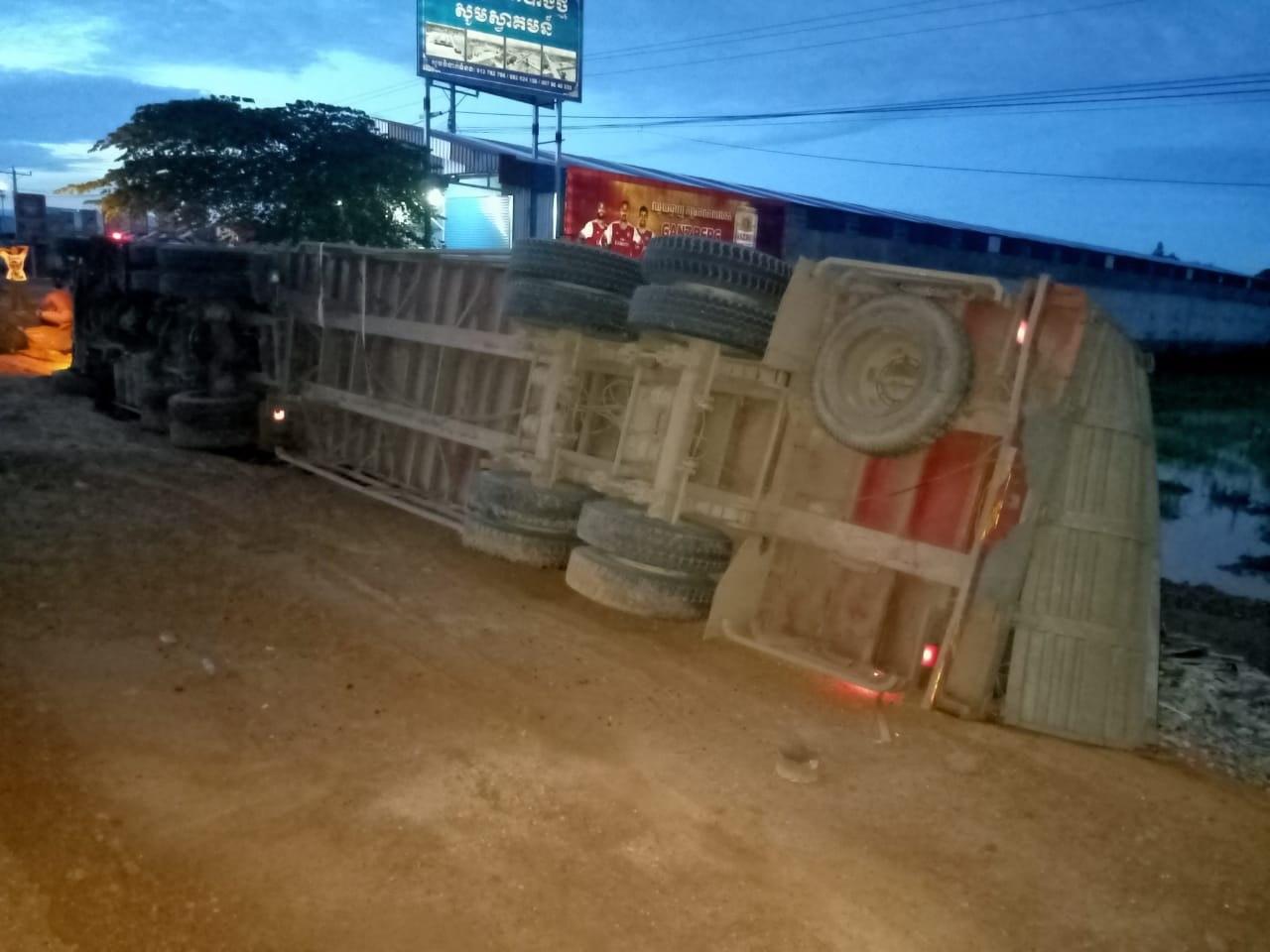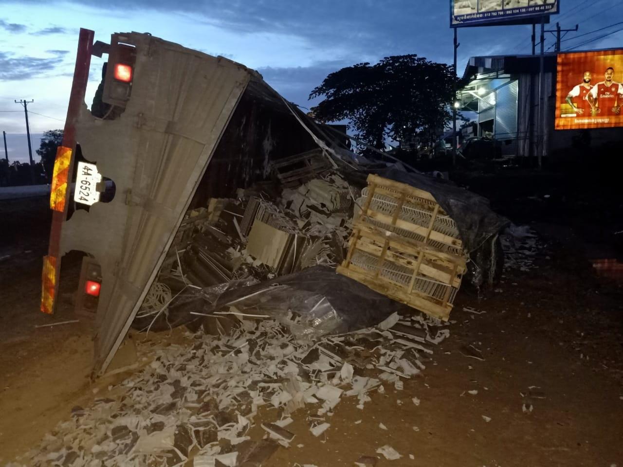 សមត្ថកិច្ចបន្តថា រថយន្តនោះមានផ្ទុកក្បឿង ធ្វើដំណើរពីលិចទៅកើត លុះមកដល់ចំណុចកើតហេតុ អ្នកបើកបរទំនងងោកមួយភាំង បានរ៉េចង្កូតក្រឡាប់ធ្លាក់ទៅចិញ្ចើមផ្លូវពីខាងត្បូង ចាក់ក្បឿងពេញផ្លូវតែម្តង។
