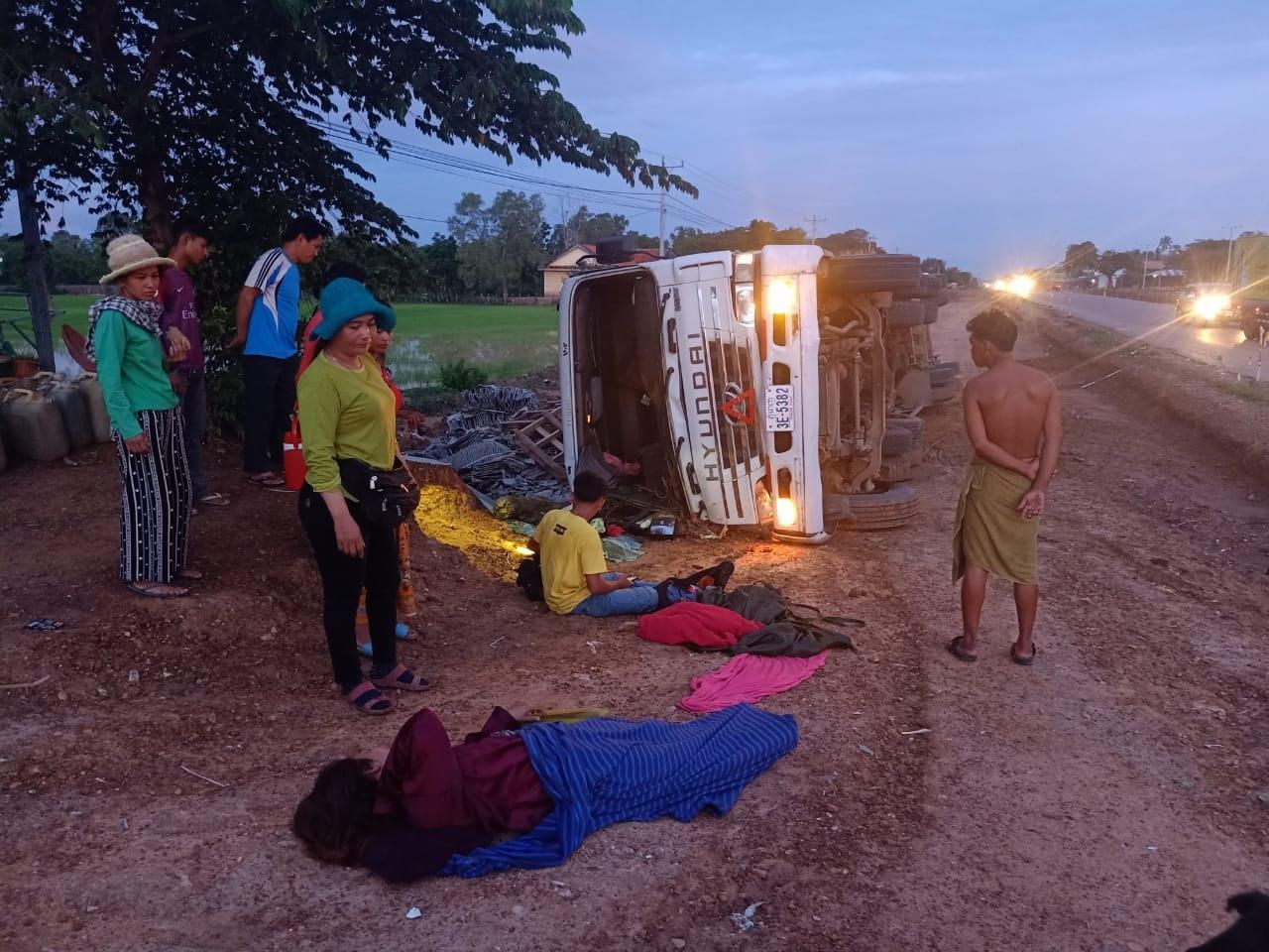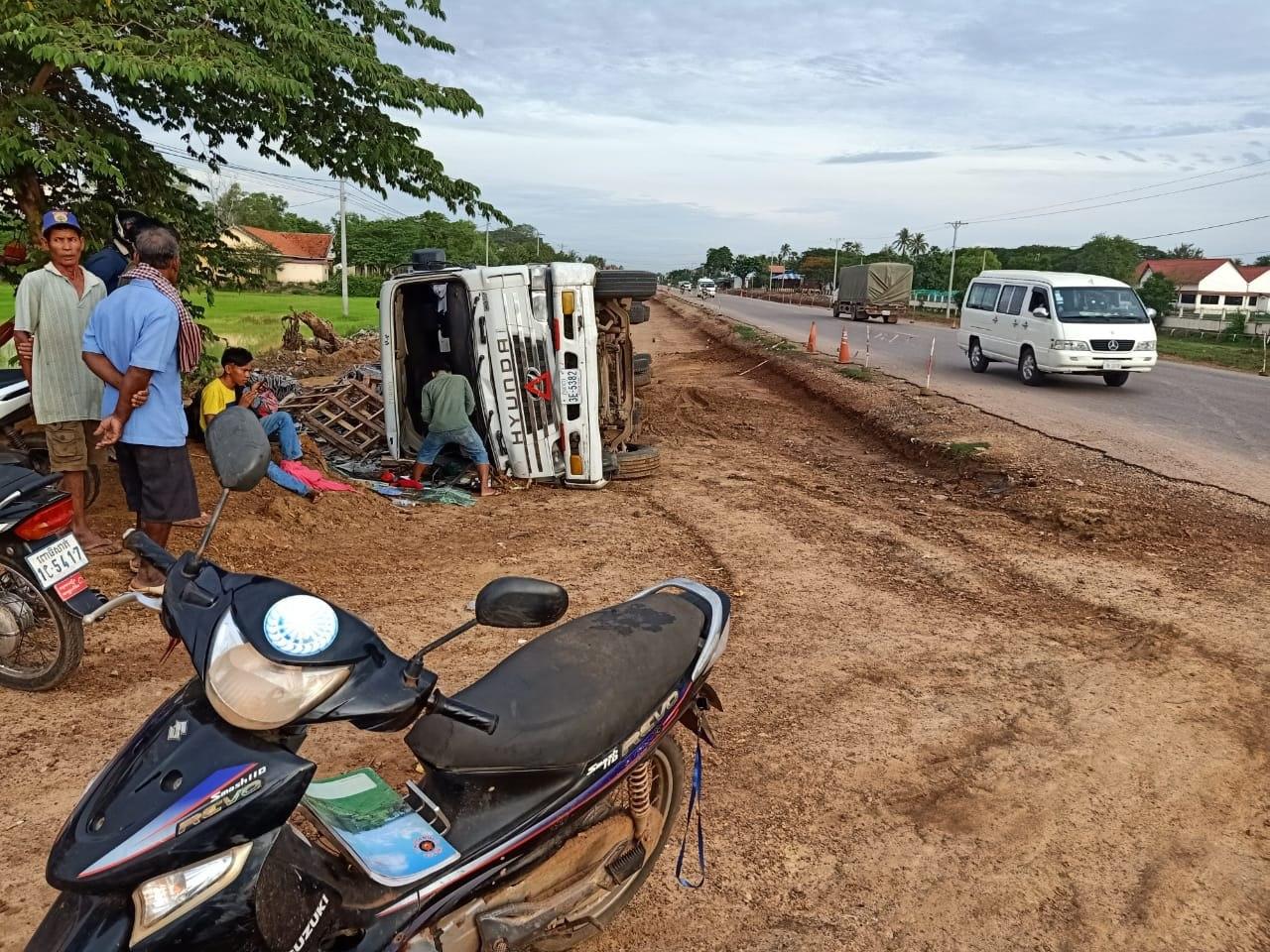 បើករថយន្តដឹកក្បឿង ងងុយដេកមួយភាំង ធ្លាក់ផ្លូវក្រឡាប់ របួសធ្ងន់ស្រាលមនុស្ស ៣នាក់ នៅខេត្តពោធិ៍សាត់