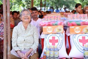 ប្រជាពលរដ្ឋរងគ្រោះ ដោយជំនន់ទឹកភ្លៀងចំនួន ៥៣៨ គ្រួសារ នៅបាត់ដំបង ទទួលអំណោយមនុស្សធម៌ពីកាកបាទក្រហមកម្ពុជា‌