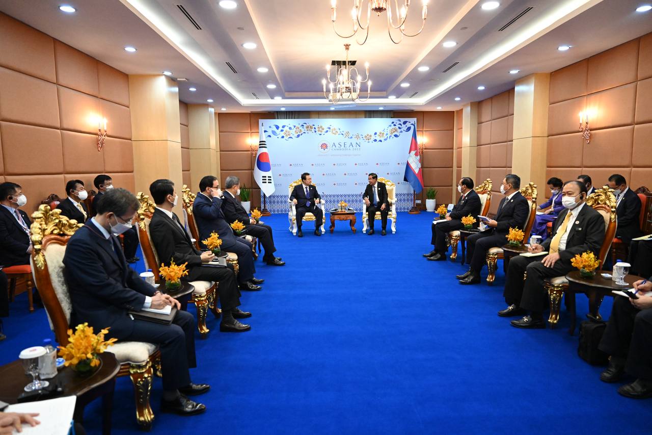 ឯកឧត្តម យូន ស៊ុកយុល ប្រធានាធិបតីនៃសាធារណរដ្ឋកូរ៉េ បញ្ជាក់ជូនសម្តេចតេជោ ថានឹងបន្តជំរុញអ្នកវិនិយោគកូរ៉េ មកកាន់កម្ពុជាកាន់តែច្រើនថែមទៀត ដើម្បីក្ដាប់យកឱកាស នៃកិច្ចព្រមព្រៀងពាណិជ្ជកម្មសេរីរវាងប្រទេសទាំងពីរ។