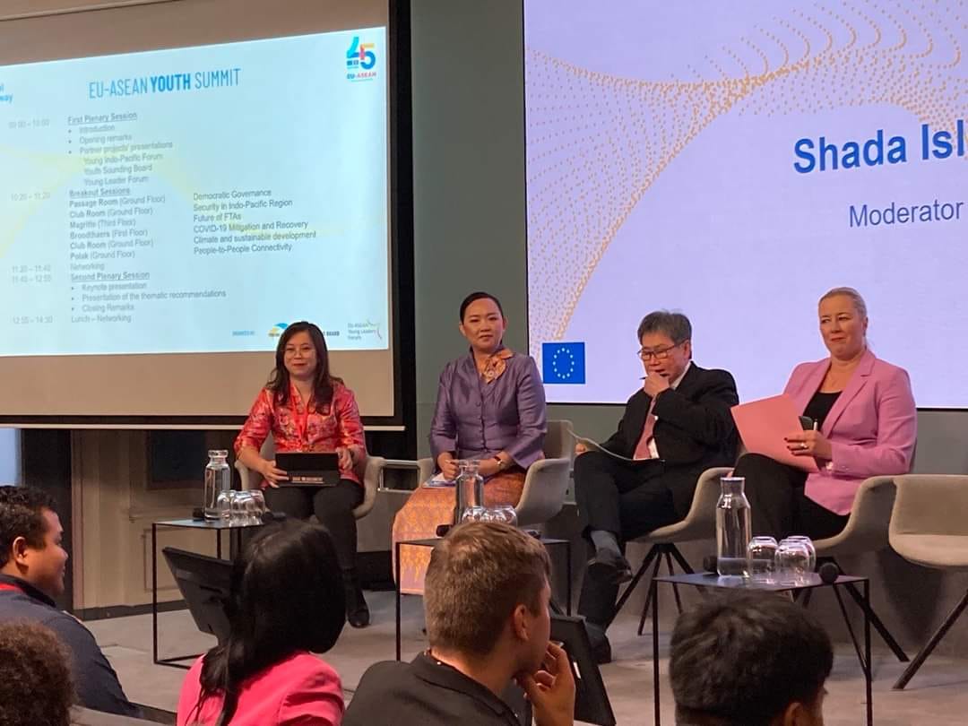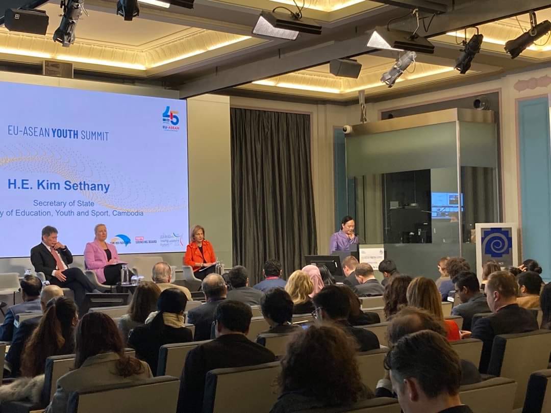 លោកជំទាវ គឹម សេដ្ឋានី រដ្ឋលេខាធិការក្រសួងអប់រំ យុវជន និងកីឡា បានដឹកនាំគណៈប្រតិភូអគ្គនាយកដ្ឋានយុវជន និងគ្រឹះស្ថានឧត្តមសិក្សារដ្ឋនិងឯកជន ដើម្បីចូលរួមក្នុងកិច្ចប្រជុំកំពូលយុវជន EU-ASEAN លើកទី១ (EU-ASEAN Youth Summit) នៅទីក្រុង Brussel, ប្រទេស Belgium។ កិច្ចប្រជុំនេះត្រូវបានរៀបចំជាព្រឹត្តិការណ៍អមនៃកិច្ចប្រជុំកំពូល ខួបលើកទី៤៥នៃកិច្ចសហប្រតិបត្តិការ ASEAN-EU។