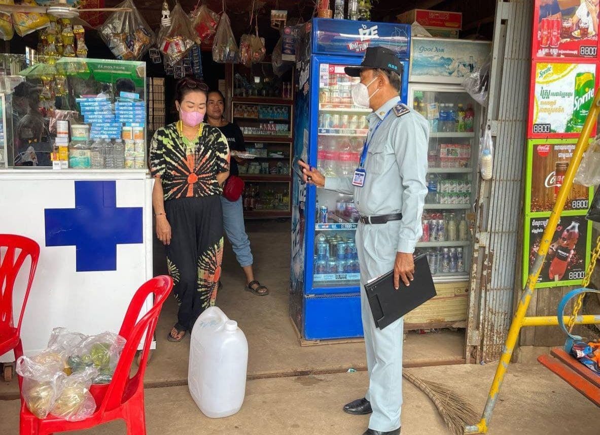 (ខេត្តក្រចេះ,ថ្ងៃទី១៩ ខែសីហា ឆ្នាំ២០២១)៖ មន្ត្រីជំនាញសាខា ក.ប.ប ខេត្តក្រចេះ នៃអគ្គនាយកដ្ឋានការពារអ្នកប្រើប្រាស់ កិច្ចការប្រកួតប្រជែង និងបង្ក្រាបការក្លែងបន្លំ នៃក្រសួងពាណិជ្ជកម្ម បានឱ្យដឹងថា មន្ត្រីជំនាសាខា ក.ប.ប ខេត្ត និងមានការចូលរួម ពីសំណាក់មន្ត្រីនៃមន្ទីរពាណិជ្ជកម្មខេត្តក្រចេះ បានចុះត្រួតពិនិត្យមុខទំនិញហួសសុពលភាពប្រើប្រាស់ និងអាល់កុលក្លែងក្លាយ ដែលក្រុមអាជីវករបានដាក់តាំងលក់នៅតាមឱសថស្ថាននានានៅជុំវិញផ្សារក្រុងក្រចេះ។