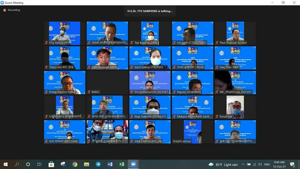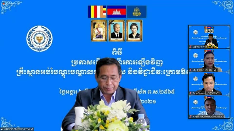 ការប្រកាសបើកដំណើរការឡើងវិញគ្រឹះស្ថានអប់រំបណ្តុះ បណ្តាលបច្ចេកទេស និងវិជ្ជាជីវៈក្រោមឱវាទក្រសួង ធ្វើឡើងតាមរយៈប្រព័ន្ធវីដេអូ(Zoom) ដោយមានអ្នកពាក់ព័ន្ធចូលរួមប្រមាណជិត២០០នាក់នោះ រដ្ឋមន្រ្តីក្រសួងការងារ និងបណ្តុះបណ្តាលវិជ្ជាជីវៈ ឯកឧត្តមបណ្ឌិត អ៉ិត សំហេង ដែលបានអញ្ជើញជាអធិបតីក្នុងកម្មវីធីនេះបានបញ្ជាក់ថា មុននឹងឈានដល់ការទទួលការអនុញ្ញាតឱ្យបើកដំណើរការសិក្សាឡើងវិញ គ្រឹះស្ថានអប់រំបណ្តុះបណ្តាលបច្ចេកទេស និងវិជ្ជាជីវៈក្រោមឱវាទក្រសួង ពីប្រមុខរាជរដ្ឋាភិបាល គឺអនុគណៈកម្មការវាយតម្លៃ ផែនការ និងយុទ្ធសាស្រ្ត នៃគណកម្មការអន្តរក្រសួងប្រយុទ្ធនឹងជំងឺកូវីដ-១៩ បានពិនិត្យនិងវាយតម្លៃ លើការរៀបចំគោលការណ៍ប្រតិបត្តិស្តង់ដា (SOP)បានដាក់ឆ្លងការប្រជុំសម្រេចពីគណៈប្រចាំការ នៃគណៈកម្មការជាតិប្រយុទ្ធនឹងជំងឺកូវីដ-១៩ (គ.ប.ក) កាលពីថ្ងៃទី៤ ខែតុលា ឆ្នាំ២០២១ កន្លងទៅ ដោយផ្អែកលើហេតុផលពីរគឺ :