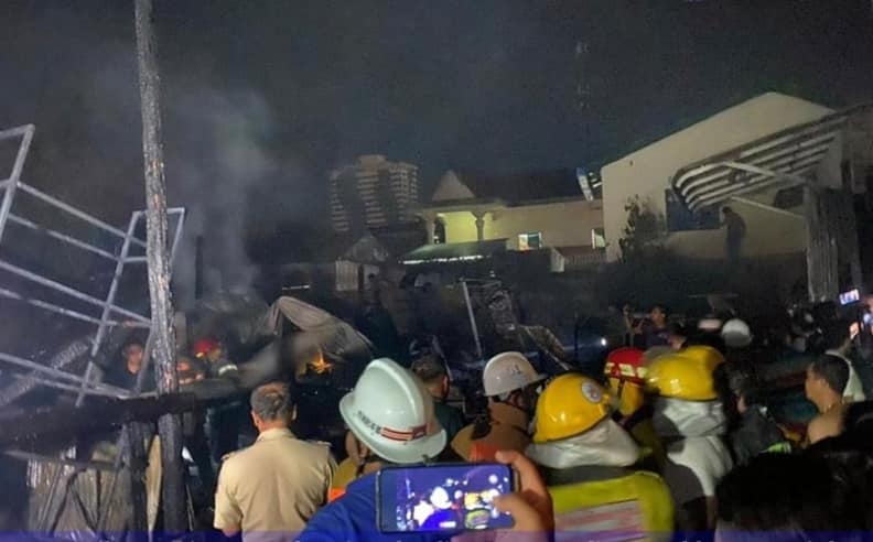 ភ្នំពេញ ៖ អគ្គិភ័យកើតឡើងនៅខណ្ឌជ្រោយចង្វារ បណ្តាលឱ្យឆាបឆេះផ្ទះជួល០៦ខ្នងកាលពីយប់មិញ ដោយសមត្ថ កិច្ចរាជធានីភ្នំពេញបានចេញអន្តរាគមន៍ប្រើប្រាស់រថយន្តពន្លត់អគ្គិភ័យសរុប២២គ្រឿង បាញ់ទឹកពន្លត់ដោយបានទប់ស្កាត់អគ្គិភ័យនោះមិនទៅឆាបឆេះរាលដាលដល់ផ្សារមួយកន្លែងនៅក្បែរនោះឡើយ។
