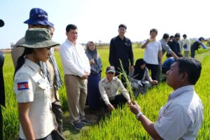 លោកជំទាវ អ៊ឹម រចនា ដឹកនាំក្រុមការងារជំនាញចុះពិនិត្យស្រែ ប្រាំង ដែលទទួលរងការខ្វះខាតទឹក នៅស្រុកឆ្លូង ខេត្តក្រចេះ