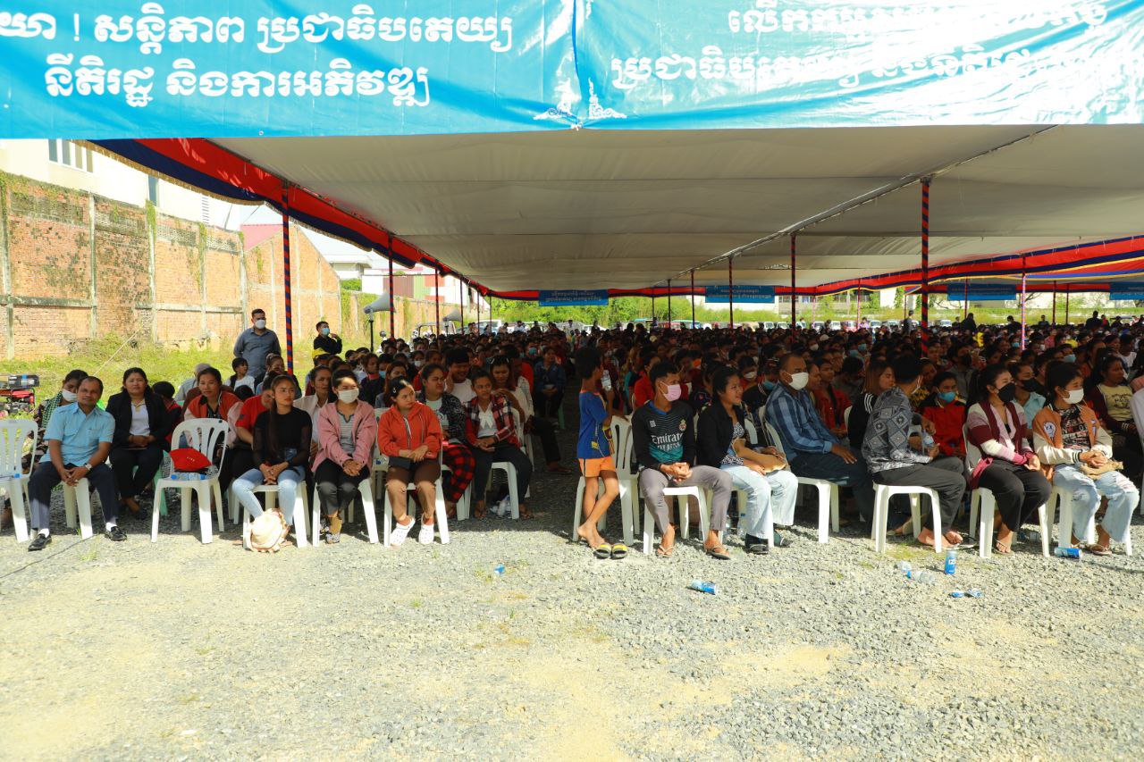 សម្ដេចតេជោនូវបានគៀគរ អ្នកវិនិយោគទុនមកបណ្ដាក់ទុនរកស៊ីនៅស្រុកខ្មែរ បង្កើតឲ្យមានរោងចក្រ សហគ្រាស ដើម្បីឲ្យបងប្អូន កម្មករ កម្មការិនីយើងមានការងារធ្វើ។ ទណ្ឌិត សម រង្ស៊ី បែរជាបំភ្លេចបំផ្លាញបងប្អូនប្រជាពលរដ្ឋកម្មករ-កម្មការិនីទៅវិញ ដោយការសុំឱ្យប្រទេសដទៃផ្ដាច់ជំនួយមកកម្ពុជា។ ការផ្តាច់ជំនួយនេះ អ្នកដែលស្លាប់មុនគេគឺបងប្អូននកម្មករ កម្មការិនីនេះហើយ ដែលនេះជាចំណុចបងប្អូនត្រូវគិតគូរពិចារណា។