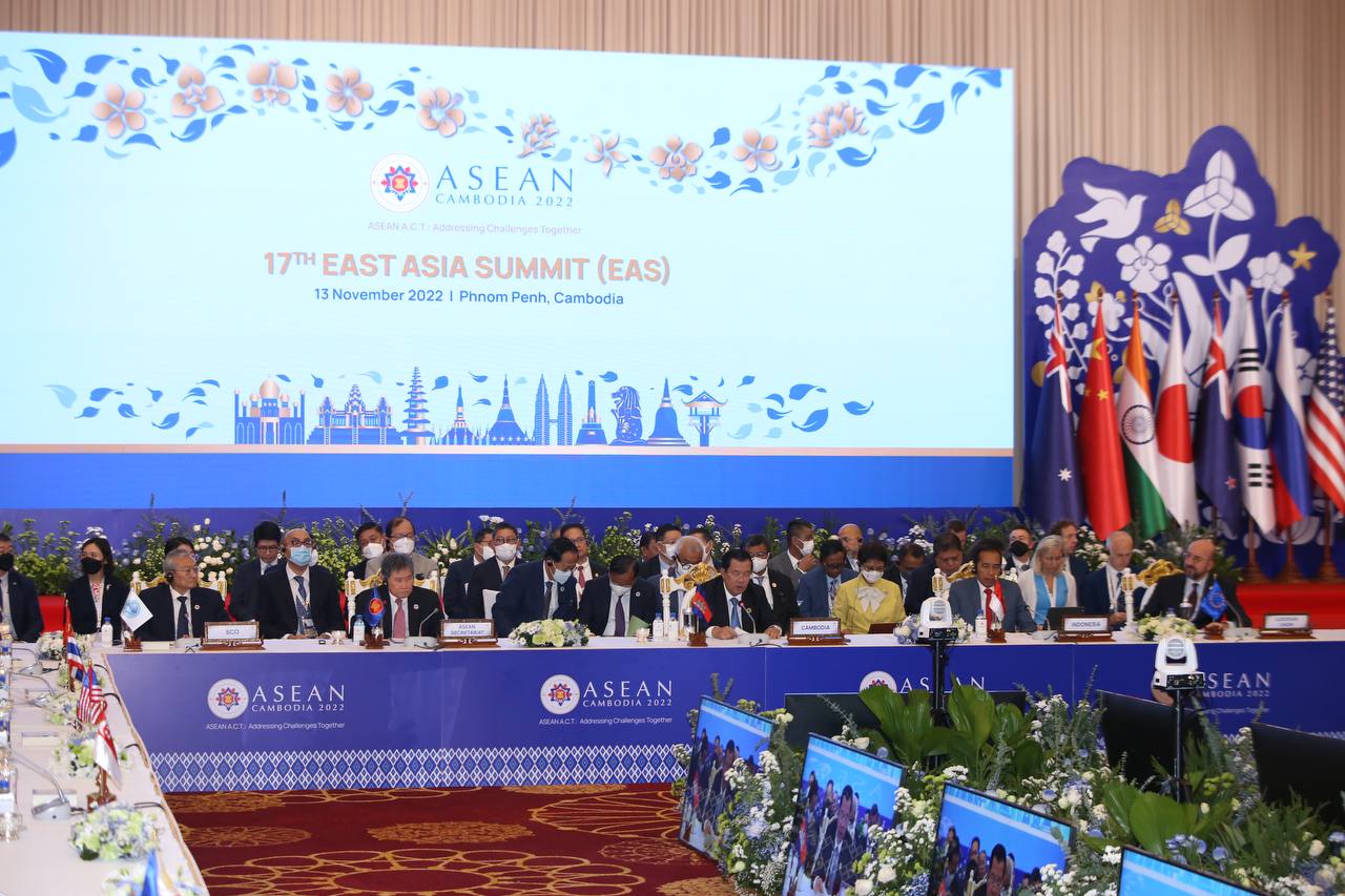 ថ្លែងក្នុងពិធីបិទកិច្ចប្រជុំកំពូលអាស៊ានលើកទី៤០ និង៤១ និងកិច្ចប្រជុំកំពូលពាក់ព័ន្ធនិង ពិធីផ្ទេរតំណែងប្រធានអាស៊ាន ជូនឥណ្ឌូនេស៊ីរាជធានីភ្នំពេញ, ថ្ងៃទី ១៣ ខែ វិច្ឆិកា ឆ្នាំ២០២២ សម្តេចតេជោ ហ៊ុន សែន នាយករដ្ឋមន្ត្រីកម្ពុជា បានសង្កត់ធ្ងន់ថា មជ្ឈភាពអាស៊ាន គឺជាកម្លាំងចលករចម្បង សម្រាប់កិច្ចសន្ទនា និងកិច្ចសហប្រតិបត្តិការជាមួយនឹងដៃគូខាងក្រៅ តាមរយៈយន្តការដែលដឹកនាំដោយអាស៊ាន។ ទោះបីជាស្ថិតក្នុងស្ថានការណ៍ណាក៏ដោយ យើងត្រូវរក្សាឯកភាពអាស៊ាន ដើម្បីអត្ថប្រយោជន៍ខ្ពស់បំផុតសម្រាប់តំបន់ទាំងមូល។ សម្តេចតេជោ មានប្រសាសន៏ថា ការលើកកម្ពស់សាមគ្គីភាព និងឯកភាព នឹងនៅតែជាអាទិភាពកំពូលរបស់យើង នៅក្នុងឆ្នាំបន្តបន្ទាប់ទៀត។ ជាសក្ខីភាពជាក់ស្តែងនៃស្មារតី «ភាពរួបរួមគ្នា» នៅក្នុងឆ្នាំនេះ យើងអាចដោះស្រាយ និងទប់ស្កាត់បញ្ហាប្រឈមជាច្រើន នៅក្នុងតំបន់ ដែលនាំឱ្យយើងមានលទ្ធភាព ក្នុងការរក្សានូវសន្តិភាព វិបុលភាព និងសុខដុមរមនា សម្រាប់គ្រួសារ អាស៊ានរបស់យើង។សម្តេច តេជោ នាយករដ្ឋមន្ត្រី សង្កត់ធ្ងន់ថា ព្រះរាជាណាចក្រកម្ពុជា មានជំនឿយ៉ាងពេញលេញថា សាធារណៈរដ្ឋឥណ្ឌូនេស៊ី ដែលក្លាយ ជាប្រធានអាស៊ានប្តូរវេនបន្ទាប់ទៅនេះ នឹងបន្តដឹកនាំអាស៊ាន ដើម្បីសម្រេចបាននូវគោលបំណង ចម្បង គឺសហគមន៍អាស៊ាន ប្រកបដោយសុខសន្តិភាព ភាពធន់ និងបរិយាបន្ន ។