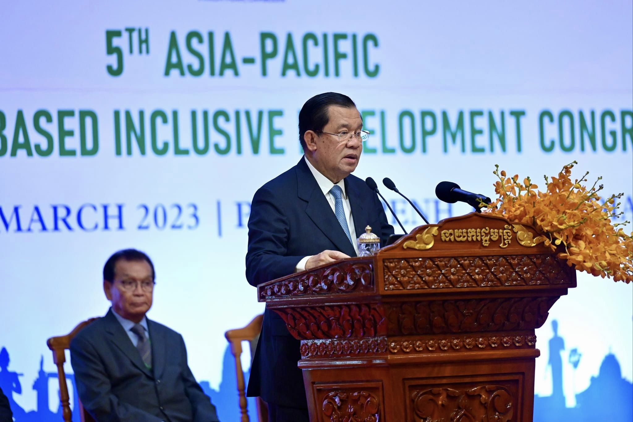 ថ្លែងក្នុងពិធីបើកសន្និសីទជនមានពិការភាពប្រចាំតំបន់អាស៊ី និងអាស៊ីប៉ាស៊ីហ្វិកលើកទី៥នៅសណ្ឋាគារសុខា រ៉េស៊ីដង់ភ្នំពេញ នៅព្រឹកថ្ងៃទី១៥ ខែមីនា ឆ្នាំ២០២៣ នេះ សម្ដេចតេជោ ហ៊ុន សែន នាយករដ្ឋមន្ត្រី បានជំរុញឲ្យបង្កើនកិច្ចសហការរវាងប្រជាជន រដ្ឋាភិបាល ដៃគូអភិវឌ្ឍ និងសង្គមស៊ីវិលត្រូវបានលើកទឹកចិត្ត សំដៅចែករំលែកបទពិសោធ ផ្លាស់ប្តូរបច្ចេកវិទ្យាព័ត៌មាន និងឧត្តមានុវត្តន៍ជាក់ស្តែង សម្រាប់ជាធាតុចូលដល់ការសម្រួចបន្ថែមលើផែនការអភិវឌ្ឍវិស័យពិការភាពនៅកម្រិត សហគមន៍ឱ្យបាន។