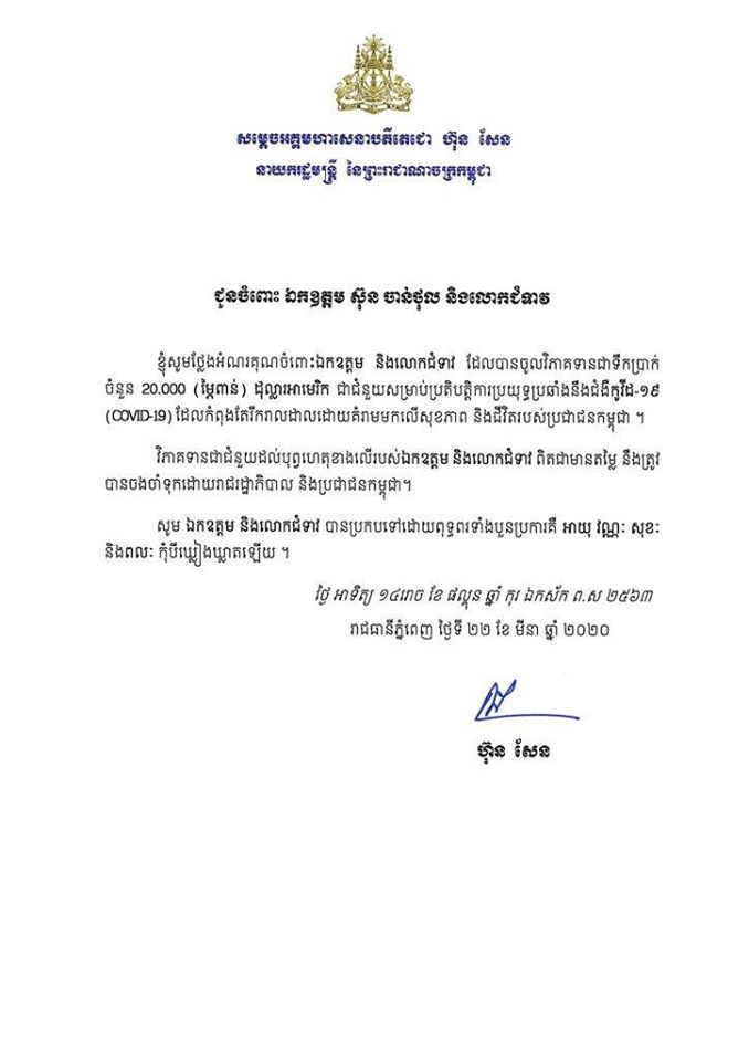 សារលិខិតមានខ្លឹមសារថា៖