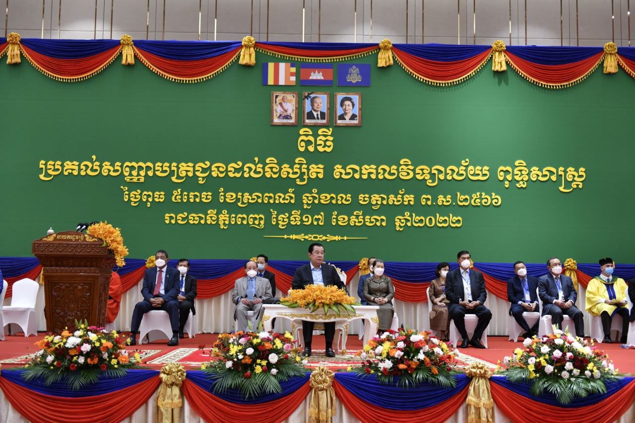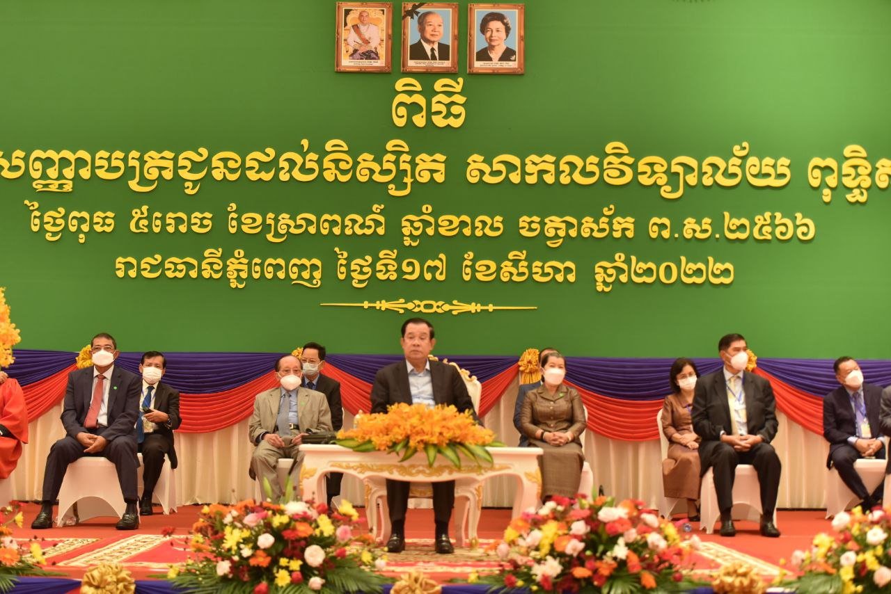 សម្តេចតេជោ ហ៊ុន សែន នាយករដ្ឋមន្ត្រីកម្ពុជា នៅព្រឹកថ្ងៃពុធ ទី១៧ ខែសីហា ឆ្នាំ២០២២ បានអញ្ជើញជាអធិបតីភាពដ៏ខ្ពង់ខ្ពស់ក្នុងពិធីចែកសញ្ញាបត្រជូននិស្សិតសាកលវិទ្យាល័យពុទ្ធិសាស្ត្រសរុប៦២៣នាក់។