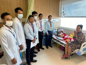 ដោយក្តីមេត្តាករុណាប្រកបធម៌សប្បុរសដ៏ខ្ពង់ខ្ពស់ពីសំណាក់ សម្តេចមហាបវរធិបតី ហ៊ុន ម៉ាណែត និងលោកជំទាវបណ្ឌិត ពេជ ចន្ទមុន្នី, លោកទាំងទ្វេ បានចាត់ក្រុមគ្រូពេទ្យឯកទេសរបស់សមាគមគ្រូពេទ្យស្ម័គ្រចិត្តយុវជនសម្តេចតេជោ (TYDA) នាំបងប្រុស យាវ ណារិន អាយុ ៤៩ ឆ្នាំ រស់នៅឃុំកំពង់ឆ្នាំង ស្រុកកំពង់ឆ្នាំង ខេត្តកំពង់ឆ្នាំង ដែលបានជួបគ្រោះថ្នាក់ចរាចរណ៍បណ្តាលឱ្យបាក់ឆ្អឹងស្មងជើងទាំងសងខាង ហើយជើងឆ្វេងដែលបាក់នោះមានរបួសរហែកចេញឆ្អឹងមកក្រៅ យកមកវះកាត់ ព្យាបាល លាងសំអាត និងដេរបិទមុខរបួស នៅមន្ទីរពេទ្យមិត្តភាពកម្ពុជា-ចិន ព្រះកុសុម: ។