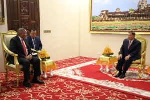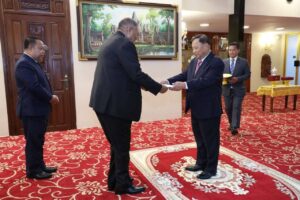 សម្តេចវិបុលសេនាភក្តី សាយ ឈុំ ប្រមុខរដ្ឋស្តីទី នៃព្រះរាជាណា ចក្រកម្ពុជា នៅព្រឹកថ្ងៃទី១៤ ខែមីនា ឆ្នាំ២០២៤ បានអនុញ្ញាតឱ្យ ឯកឧត្ដម Darkey Ephraim Africa ឯកអគ្គរដ្ឋទូតតែងតាំងថ្មី នៃសាធារណរដ្ឋអាហ្វ្រិកខាងត្បូង ចូលជូនសារតាំង និងសម្តែងការគួរសម នៅវិមានព្រឹទ្ធសភា។