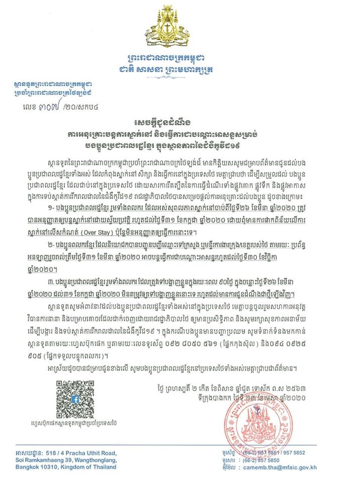 អាចបន្តស្នាក់នៅ និងធ្វើការនៅប្រទេសថៃបន្តទៀត ក្នុងដំណាក់ កាលកូវីដ១៩នេះ។