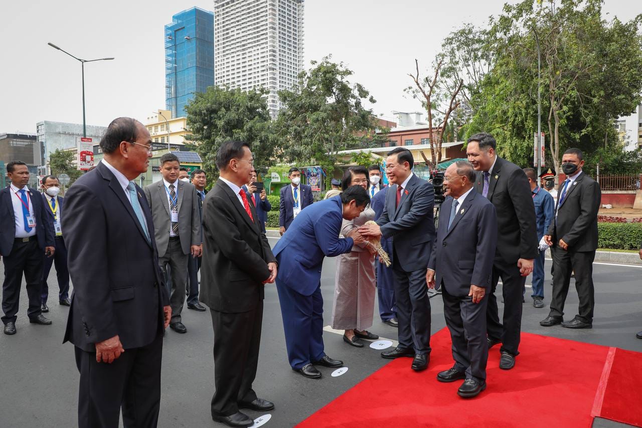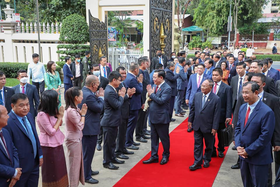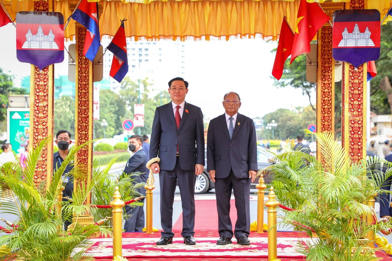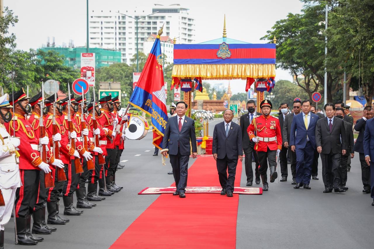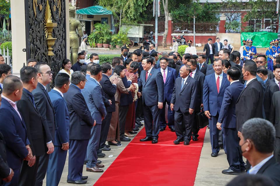 សម្តេចអគ្គមហាពញាចក្រី ហេង សំរិន ប្រធានរដ្ឋសភា នៃព្រះរាជាណាចក្រកម្ពុជា ឯកឧត្តម វឿង ឌីញ ហ្វេ (VUONG DINH HUE) ប្រធានរដ្ឋសភា នៃសាធារណ រដ្ឋសង្គម និយមវៀតណាម បានជួបសវនាការ និងពិភាក្សាការងារ នៅព្រឹកថ្ងៃសៅរ៍ទី១៩ ខែវិច្ឆិកា ឆ្នាំ ២០២២នេះ នៅវិមានរដ្ឋសភា។ រដ្ឋសភាកម្ពុជាបានរៀបចំទទួលបដិសណ្ឋារកិច្ចជាផ្លូវការចំពោះគណៈប្រតិភូជាន់ខ្ពស់រដ្ឋសភា វៀតណាម ដឹកនាំដោយ ឯកឧត្តម វឿង ឌីញ ហ្វេ នាព្រឹកថ្ងៃទី១៩ ខែវិច្ឆិកា ឆ្នាំ២០២២ នៅវិមានរដ្ឋសភា មុនពេលដែលថ្នាក់ ដឹកនាំរដ្ឋសភាប្រទេសទំាងពីរបានជួបពិភាក្សាការងារទ្វេភាគី។