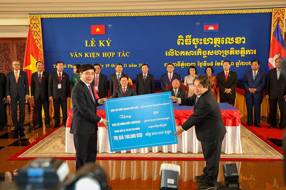 ថ្នាក់ដឹកនាំរដ្ឋសភាប្រទេសទំាងពីរ នឹងអញ្ជើញចុះហត្ថ លេខាលើអនុស្សរណៈយោគយល់គ្នារវាងរដ្ឋសភាកម្ពុជា- វៀតណាម និងបានអញ្ជើញជាអធិបតីភាពនៅ ក្នុងពិធីចុះហត្ថលេខា លើអនុស្សរណៈយោគយល់គ្នារវាងអគ្គលេខា ធិការដ្ឋានរដ្ឋសភាកម្ពុជា និងខុទ្ទកាល័យរដ្ឋសភាវៀតណាម នៅក្នុងការពង្រឹងពង្រីកកិច្ចសហប្រ តិបត្តិការឱ្យកាន់តែស៊ីជម្រៅ ទូលំទូលាយ ឆ្លើយតបបរិបទជាក់ស្តែង ផងដែរ។ សូមជម្រាបថា ឯកឧត្តម វឿង ឌីញ ហ្វេ បានដឹកនាំគណៈ ប្រតិភូជាន់ខ្ពស់រដ្ឋសភាវៀតណាម មកបំពេញទស្សនកិច្ចជាផ្លូវការ និងមិត្តភាព នៅព្រះរាជាណាចក្រកម្ពុជា ពីថ្ងៃទី១៩ ដល់ថ្ងៃទី២៣ ខែវិច្ឆិកា ឆ្នាំ២០២២។ បន្ទាប់មកឯកឧត្តមនឹងអញ្ជើញចូលរួមមហាសន្និបាតអន្តរសភាអាស៊ាន (AIPA) លើកទី៤៣ ដែលរដ្ឋសភាកម្ពុជាធ្វើជាម្ចាស់ផ្ទះបន្តទៀត៕
