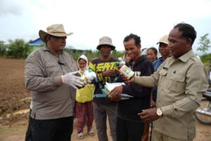 ពឺឯកឧត្តម ងិន ឆាយ ប្រតិភូរាជរដ្ឋាភិបាលកម្ពុជាទទួលបន្ទុកជាអគ្គនាយកនៃអគ្គនាយកដ្ឋានកសិកម្ម បានដឹកនាំមន្រ្តីជំនាញបន្តចុះពិនិត្យស្ថានភាពនៃការផ្ទុះរាលដាលដង្កូវហ្វូង និងនាំយកដ្រូនបង្ហោះបាញ់ថ្នាំកសិកម្មកម្ចាត់ដង្កូវនៅស្រុកភ្នំស្រួច ខេត្តកំពង់ស្ពឺ ដោយមានការចូលរួមពីអាជ្ញាធរមូលដ្ឋាន និងអនុ ប្រធានមន្ទីរកសិកម្មខេត្តកំពង់ស្ពឺ។