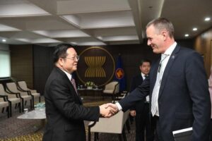 នៅរសៀលថ្ងៃព្រហស្បតិ៍ ១២ កើត ខែផល្គុន ឆ្នាំថោះ បញ្ចស័ក ព.ស ២៥៦៧ ត្រូវនឹងថ្ងៃទី ២១ ខែមីនា ឆ្នាំ២០២៤ នៅលេខាធិការដ្ឋានអាស៊ាន ប្រចាំទីក្រុងហ្សការតា សាធារណរដ្ឋឥណ្ឌូណេស៊ី ឯកឧត្តមបណ្ឌិត កៅ គឹមហួន អគ្គលេខាធិការអាស៊ាន បានជួបពិភាក្សាការងារជាមួយឯកឧត្តម Stuart Calman ឯកអគ្គរាជទូតនូវែលសេឡង់ប្រចាំអាស៊ាន។ នៅក្នុងឱកាសនោះ ភាគីទាំងពីរបានតាមដានការងារបន្ត ពីអ្វីដែលឯកឧត្តមអគ្គលេខាធិការអាស៊ាន និងឯកឧត្តមនាយករដ្ឋមន្ត្រីនូវែលសេឡង់ បានពិភាក្សាគ្នានៅប្រទេសអូស្ត្រាលីកាលពីពេលថ្មីៗនេះ ព្រមទាំងពិភាក្សារិះរកវិធីដើម្បីពង្រឹងទំនាក់ទំនង និងកិច្ចសហប្រតិបត្តិការរវាងអាស៊ាន និងនូវែលសេឡង់ ជាពិសេសការត្រៀមសម្រាប់ខួបអនុស្សាវរីយ៍ ៥០ ឆ្នាំ នៃទំនាក់ទំនងដៃគូសន្ទនាអាស៊ាន-នូវែលសេឡង់ នៅឆ្នាំ២០២៥។