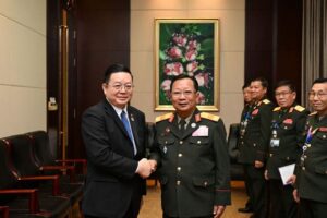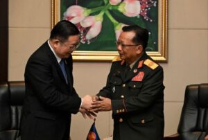 នៅរសៀលថ្ងៃពុធ ៥រោច ខែកត្តិក ឆ្នាំរោង ឆស័ក ព.ស.២៥៦៨ ត្រូវនឹងថ្ងៃទី ២០ ខែវិច្ឆិកា ឆ្នាំ២០២៤ នៅរដ្ឋធានីវៀងច័ន្ទ សាធារណរដ្ឋប្រជាធិបតេយ្យប្រជាមានិតឡាវ ឯកឧត្តមបណ្ឌិត កៅ គឹមហួន អគ្គលេខាធិការអាស៊ាន បានជួបពិភាក្សាទ្វេភាគីជាមួយឯកឧត្តម Chansamone Chanyalath ឧបនាយករដ្ឋមន្ត្រី រដ្ឋមន្ត្រីការពារជាតិនៃសាធារណរដ្ឋប្រជាធិបតេយ្យប្រជាមានិតឡាវ និងជាប្រធានកិច្ចប្រជុំរដ្ឋមន្ត្រីការពារជាតិអាស៊ានលើកទី១៨ កិច្ចប្រជុំរដ្ឋមន្ត្រីការពារជាតិអាស៊ានបូកលើកទី ១១។