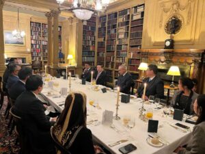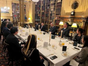 នៅល្ងាចថ្ងៃសុក្រ ៥ រោច ខែអស្សុជ ឆ្នាំថោះ បញ្ចស័ក ព.ស. ២៥៦៧ ត្រូវនឹងថ្ងៃទី ៣ ខែវិច្ឆិកា ឆ្នាំ២០២៣ នៅទីក្រុងឡុងដ៏ ចក្រភពអង់គ្លេស ឯកឧត្តមបណ្ឌិត កៅ គឹមហួន អគ្គលេខាធិការអាស៊ាន បានអញ្ជើញពិសាបាយការងារជាមួយសមាជិកគណៈកម្មាធិការអាស៊ានប្រចាំទីក្រុងឡុងដ៏ នៅឯស្ថានទូតរបស់ហ្វីលីពីនប្រចាំចក្រភពអង់គ្លេស។ ឯកឧត្តមអគ្គលេខាធិការអាស៊ាន បានធ្វើបច្ចុប្បន្នភាពជូនគណៈកម្មាធិការអាស៊ានប្រចាំទីក្រុងឡុងដ៏ អំពីការវិវត្តន៍ថ្មីៗ នៅក្នុងអាស៊ាន និងទំនាក់ទំនងរវាងអាស៊ាន និងអង់គ្លេស។ ឯកឧត្តមបណ្ឌិត ក៏បានសំដែងនូវអំណរគុណចំពោះគណៈកម្មាធិការសម្រាប់ការបន្តគាំទ្រពង្រឹងភាពជាដៃគូអាស៊ាន និងអង់គ្លេស។