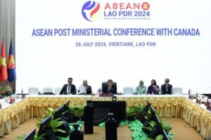 កិច្ចប្រជុំបានពិនិត្យមើលឡើងវិញនូវវឌ្ឍនភាពនៃកិច្ចសហប្រតិបត្តិការអាស៊ាន-កាណាដា ដោយសារការដាក់ចេញនូវភាពជាដៃគូយុទ្ធសាស្ត្រអាស៊ាន-កាណាដា កាលពីឆ្នាំ២០២៣ និងគូសវាសទិសដៅអនាគត។ បណ្តារដ្ឋមន្ត្រីបានកត់សម្គាល់ពីវឌ្ឍនភាព នៃការចរចាកំពុងបន្តនៃកិច្ចព្រមព្រៀងពាណិជ្ជកម្មសេរីអាស៊ាន- កាណាដា។