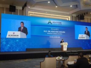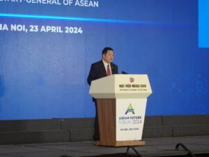 នៅព្រឹកថ្ងៃអង្គារ ១៥ កើត ខែចេត្រ ឆ្នាំរោង ឆស័ក ព.ស. ២៥៦៧ ត្រូវនឹងថ្ងៃទី ២៣ ខែមេសា ឆ្នាំ២០២៤ នៅរដ្ឋធានីហាណូយ សាធារណរដ្ឋសង្គមនិយមវៀតណាម ឯកឧត្តមបណ្ឌិត កៅ គឹមហួន អគ្គលេខាធិការអាស៊ាន បានអញ្ជើញចូលរួមក្នុងសម័យបើកវេទិកាអនាគតអាស៊ាន ដែលផ្តួចផ្តើម និងរៀបចំដោយប្រទេសវៀតណាម ក្រោមប្រធានបទ “ឆ្ពោះទៅរកកំណើនយ៉ាងឆាប់រហ័ស និងប្រកបដោយចីរភាពនៃសហគមន៍អាស៊ានមួយដែលយកប្រជាជនជាស្នូល”។ នៅក្នុងសន្ទរកថា ឯកឧត្តមអគ្គលេខាធិការអាស៊ាន បានគូសបញ្ជាក់ពីតួនាទីនៃវេទិកាអនាគតអាស៊ាន ដែលជាវេទិកាសម្រាប់អាស៊ាន និងដៃគូ ក្នុងការចែករំលែកគំនិតថ្មីៗ និងអនុសាសន៍គោលនយោបាយ។ ឯកឧត្តមបណ្ឌិត បានសង្កត់ធ្ងន់ពីពេលវេលាដ៏សមស្របនៃការរៀបចំវេទិកានេះ ដើម្បីគិតគូរពីអនាគត ជាពិសេស ស្របពេលដែលអាស៊ានកំពុងតាក់តែងចក្ខុវិស័យសហគមន៍អាស៊ានឆ្នាំ២០៤៥ និងរៀបចំផែនការយុទ្ធសាស្ត្ររបស់ចក្ខុវិស័យនេះ។