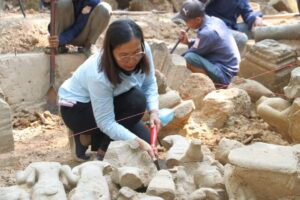 លោកស្រី ស៊ីមន មានប្រសាសន៍ទៀតថា ដោយសារតែក្រុម ការងារប្រទះឃើញបំណែកបដិមាកប់នៅក្នុងដីជម្រៅពី១០ទៅ ១៥សង់ទីម៉ែត្រ កាន់តែច្រើននោះ ក៏សម្រេចស្នើសុំយោបល់ពីថ្នាក់លើ ធ្វើរណ្តៅកំណាយ ដើម្បីស្រាវជ្រាវរកនៅក្រោមដីបន្ថែមទៀត។ នៅពេលជីកកាយដីជ្រៅបន្តិច ក៏ប្រទះឃើញបំណែករូបបដិមាកាន់តែច្រើន សរុបប្រហែលជាង១០០បំណែក។ រហូតមកដល់ពេលនេះ ក្រុមការងារមិនទាន់ដឹងច្បាស់នៅឡើយទេ ថាតើក្នុងជម្រៅដីចុះទៅក្រោមទៀតអាចនៅតែមានបដិមាដែរឬក៏យ៉ាងណាឡើយ។ បច្ចុប្បន្នក្រុមការងារ កំពុងតែលើកយកបំណែករូបបដិមាជាច្រើនដែលគេបានប្រទះឃើញនោះ មកធ្វើការគូរប្លង់ បង់ លេខ ព្រមទាំងវាស់វែងទំហំខ្នាតជាបណ្តោះ អាសន្ន។ ក្រុមអ្នកជំនាញបុរាណវិទ្យាបានសន្និដ្ឋានថា បំណែកព្រះពុទ្ធបដិមាដែលគេប្រទះឃើញទាំងនោះ គឺស្ថិតក្នុងរចនាបថបាយ័ន។ បំណែករូបបដិមាដែលប្រទះឃើញខ្លះ មានកម្ពស់ប្រហែលកន្លះម៉ែត្រ និងទំហំពី៤០ ទៅ៥០សង់ទីម៉ែត្រ៕