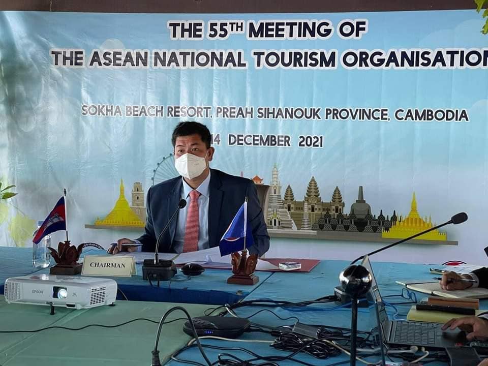 (ព្រះសីហនុ)៖ ឯកឧត្តម ថោង រដ្ឋសក្តិ ប្រធានអង្គប្រជុំស្ថាប័នជាតិទេសចរណ៍អាស៊ានលើកទី៥៥ និងអគ្គនាយកអភិវឌ្ឍន៍ទេសចរណ៍និងសហប្រតិបត្តិការអន្តរជាតិ នៅថ្ងៃទី១៤-១៥ ខែធ្នូ ឆ្នាំ២០២១ បានដឹកនាំកិច្ចប្រជុំស្ថាប័នជាតិទេសចរណ៍អាស៊ានលើកទី៥៤ និងកិច្ចប្រជុំពាក់ព័ន្ធ តាមប្រព័ន្ធវីដេអូខនហ្វើរិន នៅក្រុងព្រះសីហនុ ស្របពេលដែលកម្ពុជាធ្វើជាម្ចាស់ផ្ទះរៀបចំការរប្រលងប្រណាំងជ្រើសរើសជើងឯកទូកក្តោងអាស៊ាន South East Asian Sailing Championship (SEAS)។