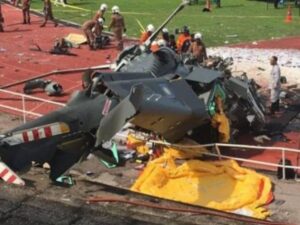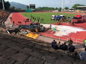 កូឡាឡាំពួរ៖ ឧទ្ធម្ភាគចក្រកងទ័ពជើងទឹកម៉ាឡេស៊ីពីរគ្រឿងបានបុកគ្នានៅកណ្តាលអាកាស អំឡុងពេលហាត់សមសម្រាប់ព្យុហយាត្រាកងទ័ពជើងទឹកកាលពីថ្ងៃអង្គារ ដោយបានសម្លាប់សមាជិកនាវិកទាំង ១០នាក់នៅលើយន្តហោះ។ កងទ័ពជើងទឹកបាននិយាយថា ឧបទ្ទវហេតុនេះបានកើតឡើងនៅឯមូលដ្ឋានទ័ពជើងទឹក Lumut ក្នុងរដ្ឋ Perak ភាគខាងលិច នៅម៉ោង ៩:៣២ព្រឹក ម៉ោងក្នុងស្រុក។ កងទ័ពជើងទឹកបាននិយាយថា ជនរងគ្រោះទាំងអស់ត្រូវបានបញ្ជាក់ថា ស្លាប់នៅកន្លែងកើតហេតុ ហើយបានបញ្ជូនទៅមន្ទីរពេទ្យយោធាមូលដ្ឋានទ័ពជើងទឹក Lumut ដើម្បីកំណត់អត្តសញ្ញាណ។ រដ្ឋមន្ត្រីការពារជាតិលោក Mohamed Khaled Nordin បាននិយាយថា យន្តហោះដែលជាឧទ្ធម្ភាគចក្រប្រតិបត្តិការដែនសមុទ្រ និងយន្តហោះចម្បាំង Fennec កំពុងហាត់សមសម្រាប់ព្យុហយាត្រាអបអរសាទរខួបលើកទី៩០ នៃកងនាវាចរម៉ាឡេស៊ី ដែលនឹងត្រូវធ្វើឡើងនៅថ្ងៃសៅរ៍។ លោកបានប្រាប់អ្នកយកព័ត៌មានថា កិច្ចខិតខំប្រឹងប្រែងកំពុងដំណើរការដើម្បីផ្ទៀងផ្ទាត់អត្តសញ្ញាណរបស់សមាជិកនាវិកដែលត្រូវបានសម្លាប់ ដែលសុទ្ធតែមានអាយុក្រោម ៤០ឆ្នាំ៕