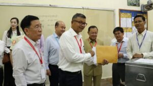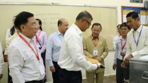 នាព្រឹកថ្ងៃទី៨ ខែតុលា ឆ្នាំ២០២៤ ឯកឧត្តមបណ្ឌិតសភាចារ្យ ហង់ជួន ណារ៉ុន ឧបនាយករដ្ឋមន្ត្រី រដ្ឋមន្ត្រីក្រសួងអប់រំ យុវជន និងកីឡា, ឯកឧត្តម ប៉ា សុជាតិវង្ស ប្រធានគណកម្មការទី៧ នៃរដ្ឋសភា, ឯកឧត្តម ហ៊ុន ម៉ានី ឧបនាយករដ្ឋមន្ត្រី រដ្ឋមន្ត្រីក្រសួងមុខងារសាធារណៈ និងជាប្រធានសហភាពសហព័ន្ធយុវជនកម្ពុជា, ឯកឧត្តម កើត ឆែ អភិបាលស្តីទី នៃគណៈអភិបាលរាជធានីភ្នំពេញ, និង ឯកឧត្តម ឃាង សេង ជាអនុប្រធានអង្គភាពប្រឆាំងអំពើពុករលួយ បានអញ្ជើញចូលរួមក្នុងពិធីបើកប្រធានវិញ្ញាសាជានិមិត្តរូប ការប្រឡងសញ្ញាបត្រមធ្យមសិក្សាទុតិយភូមិ សម័យប្រឡង៖ ០៨ តុលា ២០២៤ នៅតាមបន្ទប់ប្រឡងសម្រាប់ព្រឹកថ្ងៃទី១ នៃដំណើរការសំណេរការប្រឡងសញ្ញាបត្រមធ្យមសិក្សាទុតិយភូមិ នៅតាមមណ្ឌលប្រឡងវិទ្យាល័យព្រះស៊ីសុវត្ថិ ក្រោមការត្រួតពិនិត្យដោយអង្គភាពប្រឆាំងអំពើពុករលួយ សហភាពសហព័ន្ធយុវជនកម្ពុជា និងអ្នកពាក់ព័ន្ធចូលរួម ដើម្បីពិនិត្យភាពបិទជិត មានបិទស្កុត និងត្រាស្រោមប្រធានវិញ្ញាសា នៅចំពោះមុខបេក្ខជន។