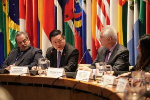 ឯកឧត្តមបណ្ឌិត កៅ គឹមហួន ផ្តល់សន្ទរកថា ក្នុងសិក្ខាសាលាដែលរៀបចំនៅស្នាក់ការកណ្តាលនៃគណៈកម្មការសេដ្ឋកិច្ចសម្រាប់តំបន់អាមេរិកឡាទីន និងការីប៊ីន