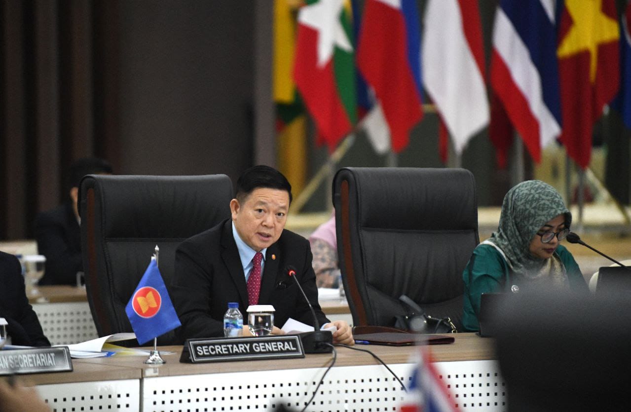 នៅព្រឹកថ្ងៃចន្ទ ៣ កើត ខែជេស្ឋ ឆ្នាំថោះ បញ្ចស័ក ព.ស. ២៥៦៧ ត្រូវនឹងថ្ងៃទី ២២ ខែឧសភា ឆ្នាំ២០២៣ នៅលេខាធិការដ្ឋានអាស៊ាន ក្នុងទីក្រុងហ្សាការតា សាធារណរដ្ឋឥណ្ឌូណេស៊ី ឯកឧត្តមបណ្ឌិត កៅ គឹមហួន អគ្គលេខាធិការអាស៊ាន បានអញ្ជើញផ្តល់សន្ទរកថាស្វាគមន៍ ក្នុងកិច្ចប្រជុំឧត្តមមន្ត្រីសេដ្ឋកិច្ចអាស៊ាន (SEOM)។